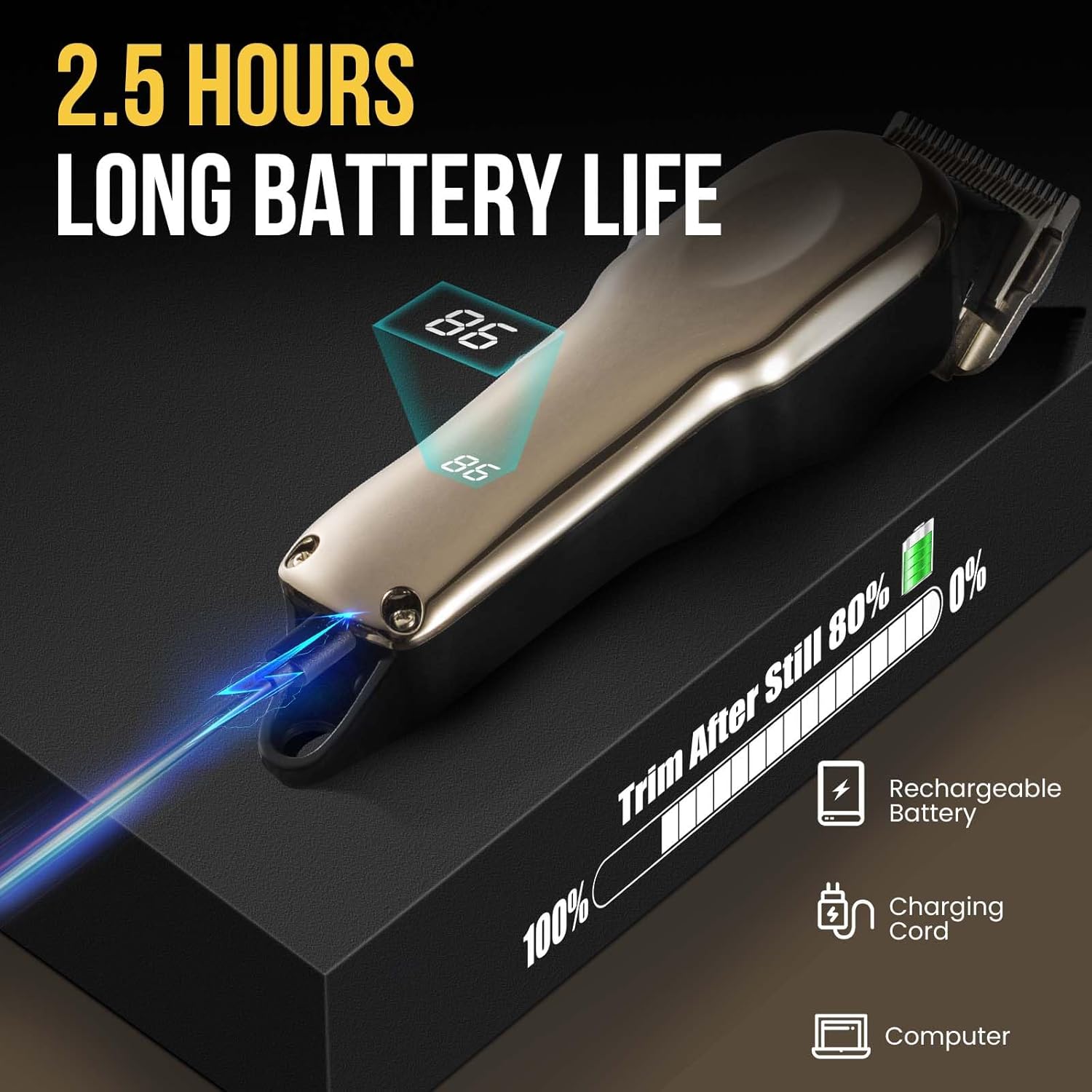 - Large-Capacity Battery and Cordless Design: 1500mAh high capacity battery, 20W Power, charging for 2-3 hours and can sustain the use of nearly 150 minutes. You could design your horse coats as you like. Our Horse Trimmer is designed with powerful for quick trim to remove your ponyโs coat, which will not snag or pull the them.Long lasting use not harm the animal. Cordless Horse clippers greatly improve the efficiency of shaving, whether in the stable or on the farm can be free to shave without the constraints of the power cord. It is lighter than traditional corded horse clippers.
