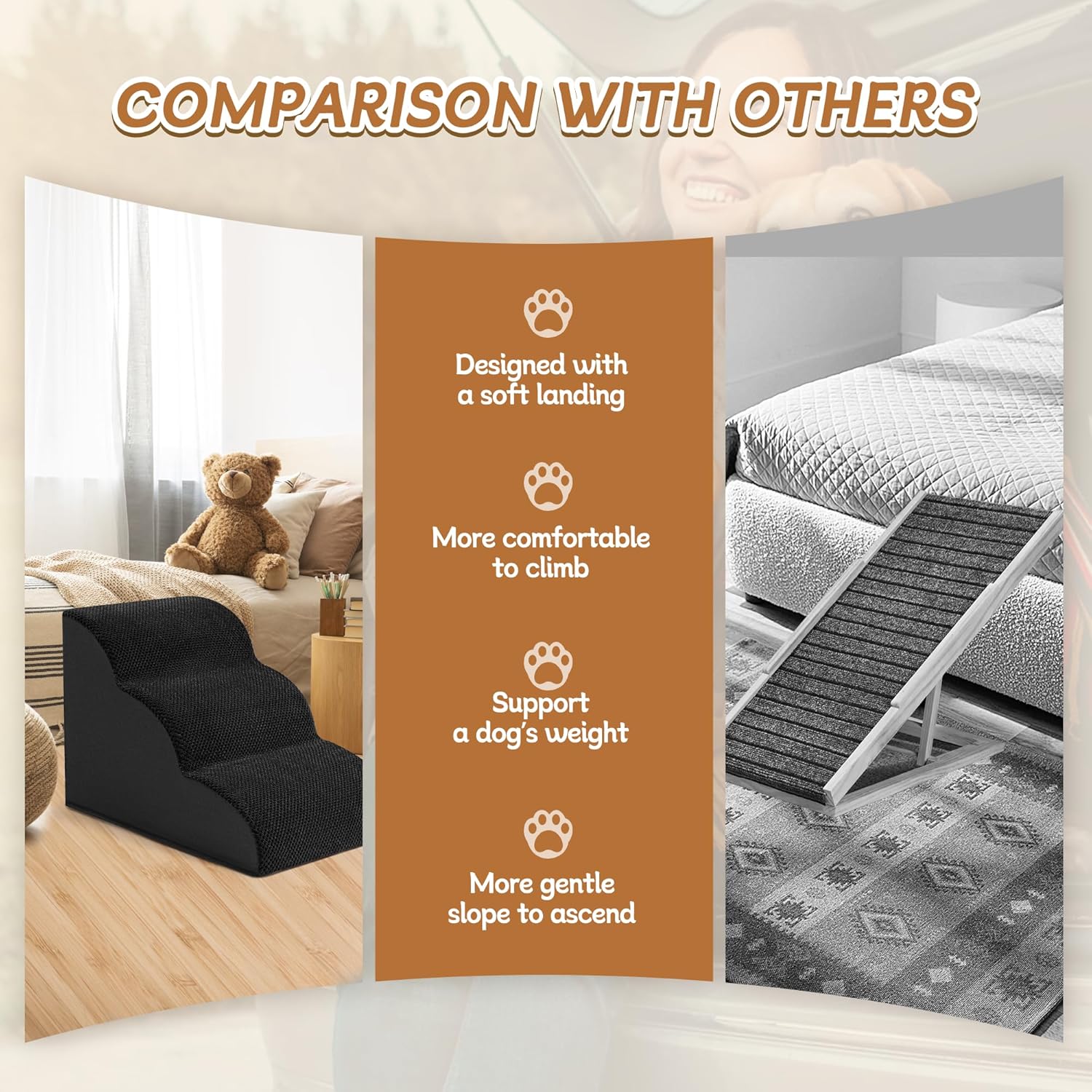 - 33D REBOUND HIGH-DENSITY FOAM: Our 33D foam delivers 63% faster rebound vs standard foam with enhanced weight capacity. Perfect for puppies, senior dogs, and pets recovering from surgery to access beds/couches safely. Dual-purpose as cat stairs for multi-pet households