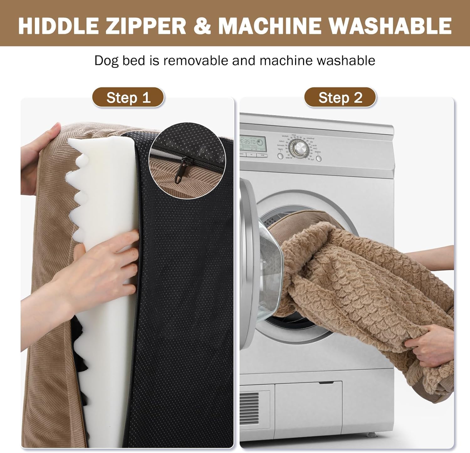 - ๐ถWATERPROOF & WASHABLE DOG BED: The dog bed features a removable, machine-washable cover with a zipper for easy to quick remove and care, so just throw it in the washing machine and will be as good as new, ensuring your pet's space stays fresh and hygienic. The waterproof inner lining fully protect the foam from spills, water damage, or accidents, prolonging the product's life.
