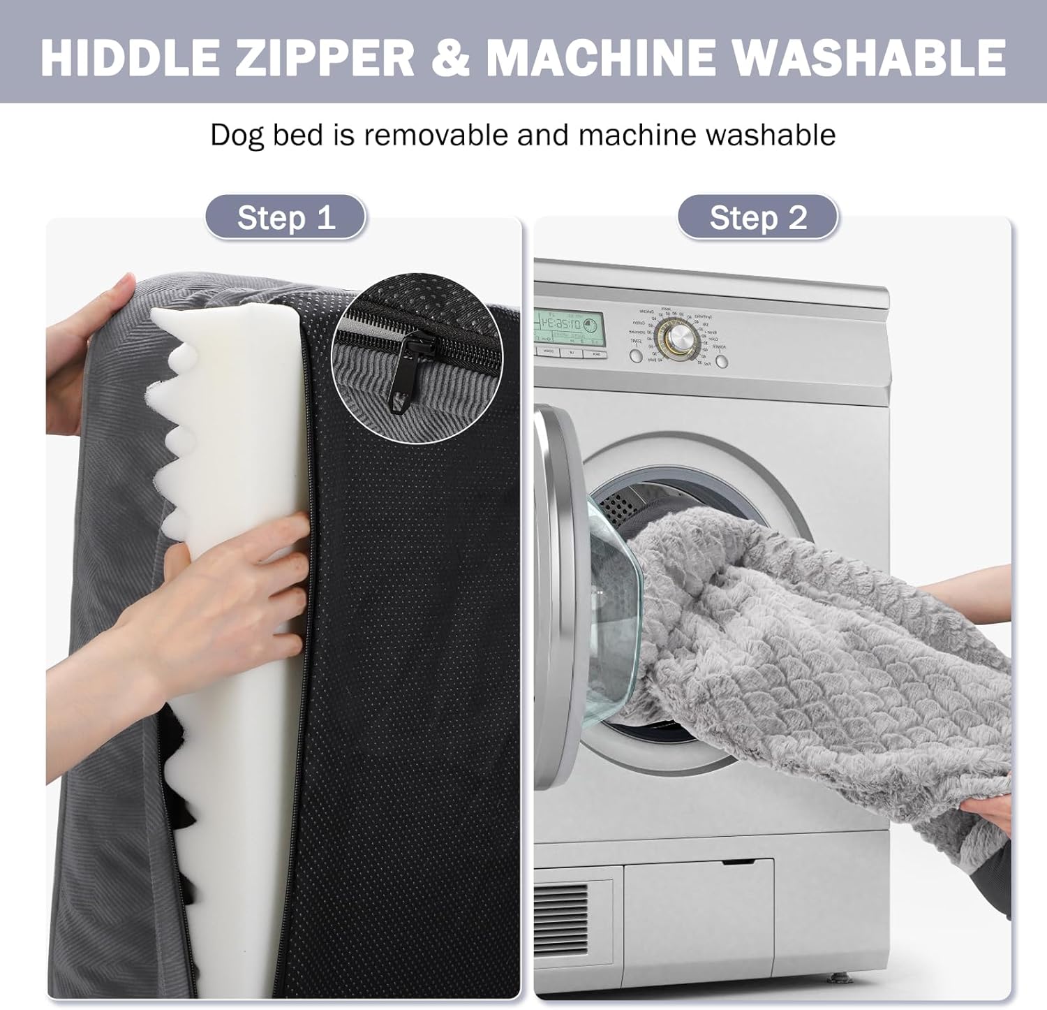 • ๐ŸถWATERPROOF & WASHABLE DOG BED: The dog bed features a removable, machine-washable cover with a zipper for easy to quick remove and care, so just throw it in the washing machine and will be as good as new, ensuring your pet's space stays fresh and hygienic. The waterproof inner lining fully protect the foam from spills, water damage, or accidents, prolonging the product's life.