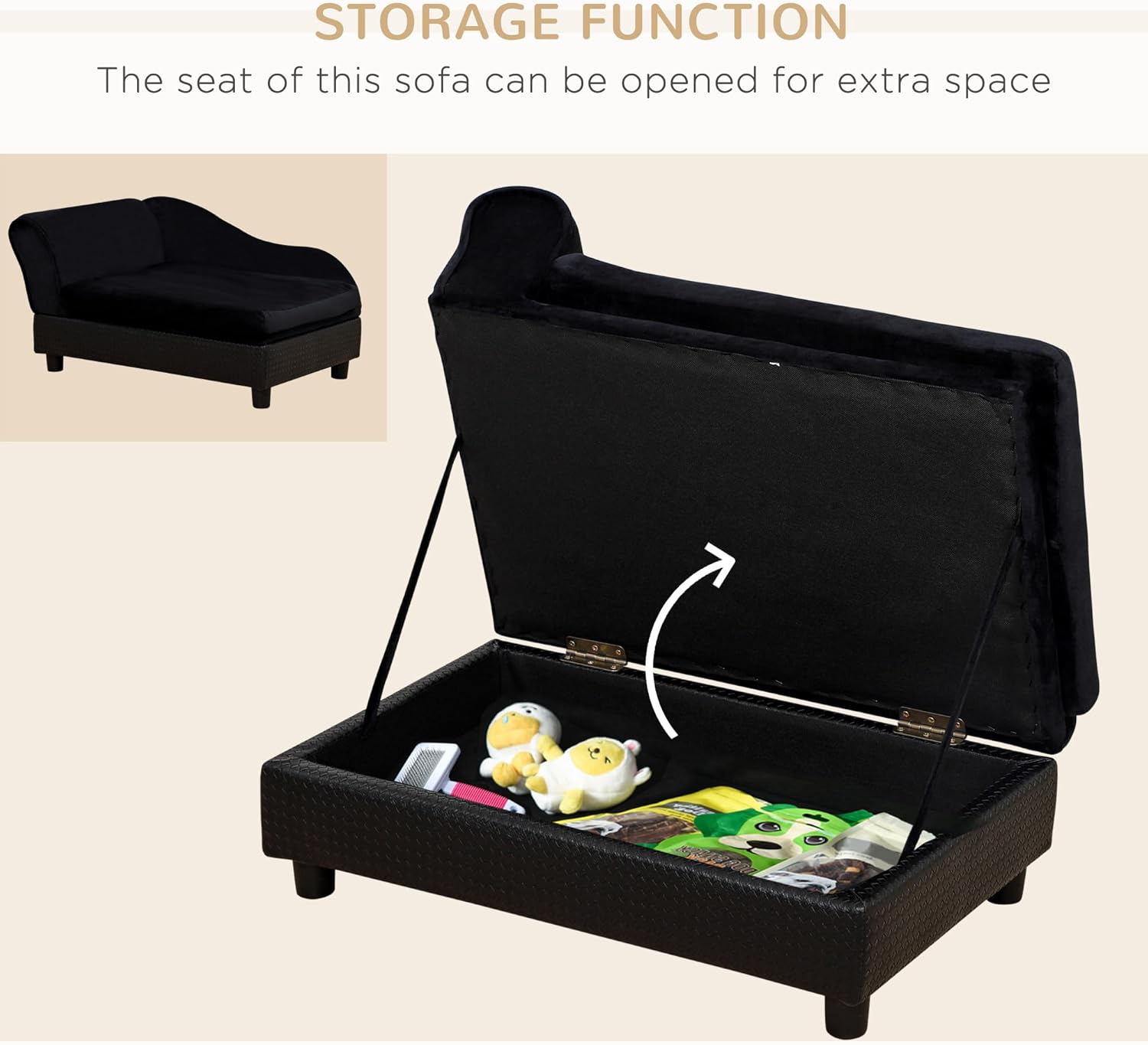 PawHut Luxury Fancy Dog Couch with Hidden Storage, Small Dog Sofa Bed with 2" Soft Foam, Modern Pet Furniture for Puppies & Little Breeds, Black