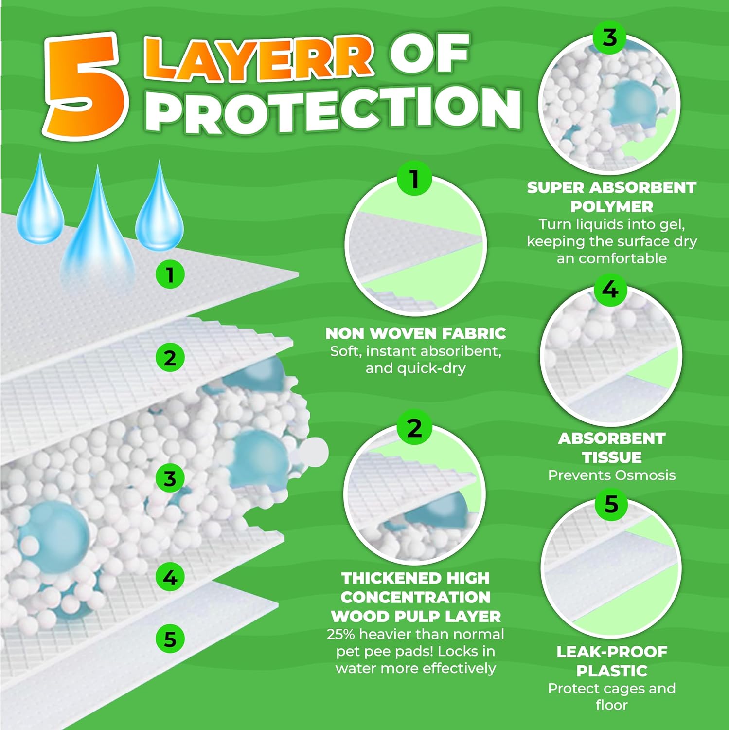 - [SUPER ABSORBENT] The soft, quilted top and sturdy inner layer absorb moisture, and the leak-proof bottom ensures your petโs cage stays dry and comfortable