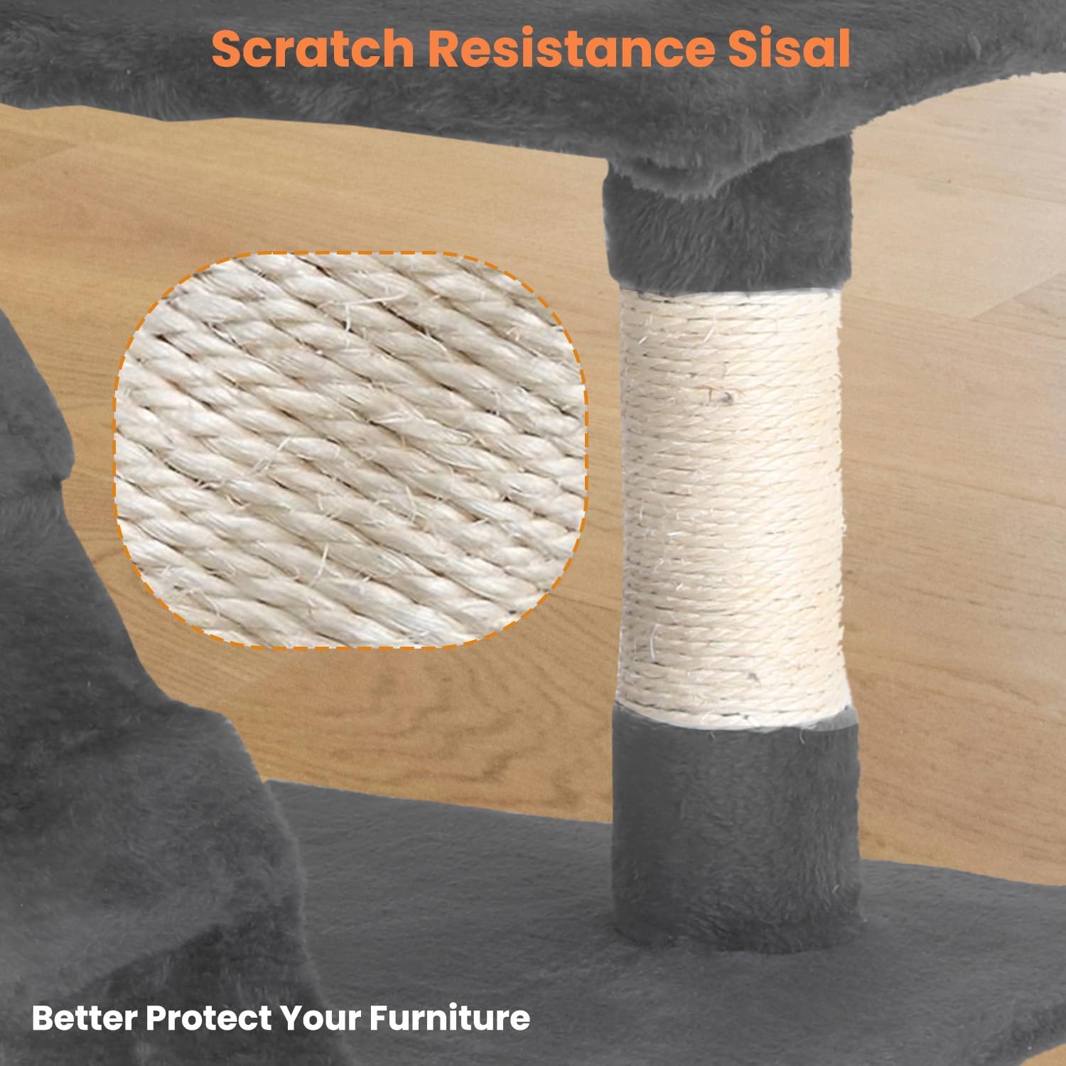- Protect Your Furniture๏ผOur fully functional and uniquely designed large cat scratching tree is a magical castle for kittens, providing a great place for your feline friend to climb up and down. It's a great way to relax while protecting delicate furniture from scratches, and with this tall indoor cat scratching tree, your cat can enjoy a full day in the cat tower!