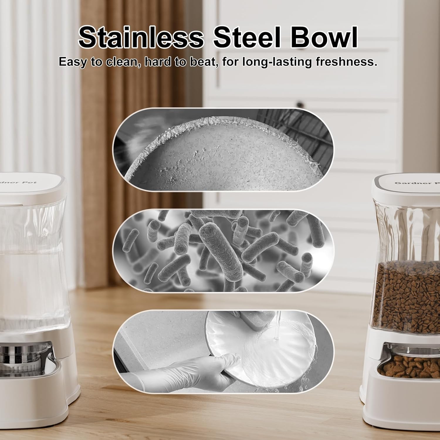 - ăFood-grade MaterialăMade of 100% BPA -free material and quipped with high-quality 304 stainless steel bowls. It is not only sturdy and durable, but also easy to clean, effectively resisting harmful substances growth.