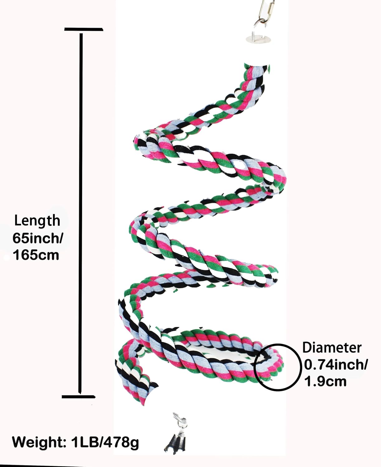 - π¦[WHAT YOU GET] 1pc 65 inch length soft cotton rope with metal bell,fully closed/open hook can hang in birdcage or outside safety,bendable internal steel wire can re-sharp it provide more fun for your pets