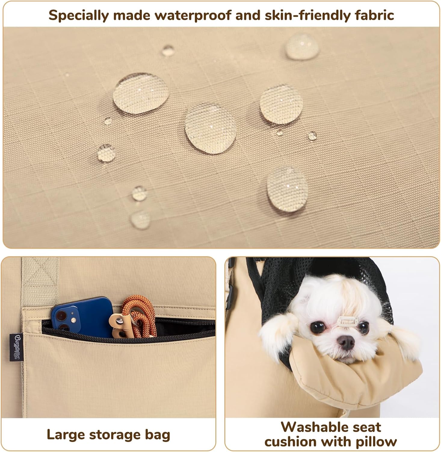 - STYLISH AND FUNCTIONAL: Our pet purse carrier features a waterproof, durable fabric, convenient side pockets for storage, and an adjustable shoulder strap, combining fashion with versatility for multiple carrying options. Can also be used as center console dog car seat for small dogs.