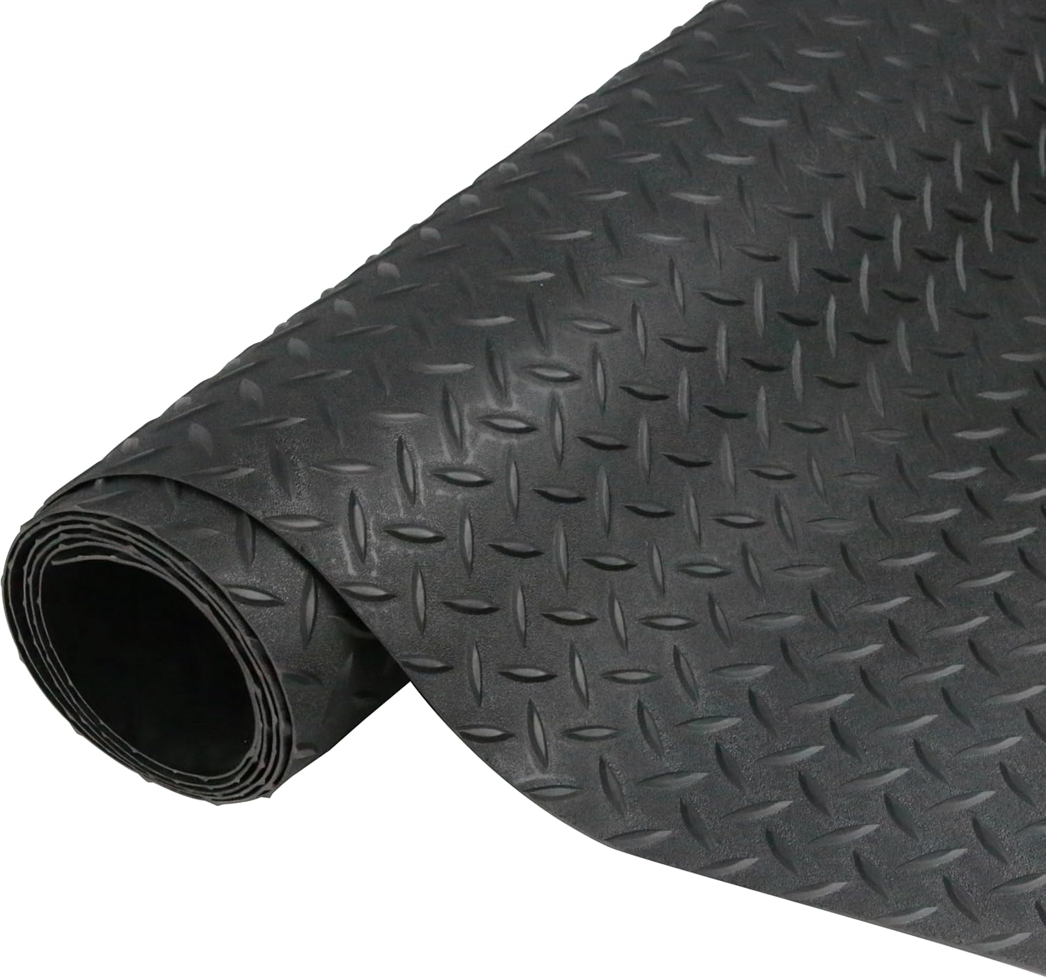7.5 x 17 FT Garage Floor Mat,2.5 mm Thickness Diamond PVC Garage Flooring Roll, Anti-Slip Shop Floor & Parking mats for Workshop,Gym,Golf Cart Parking or Trailers