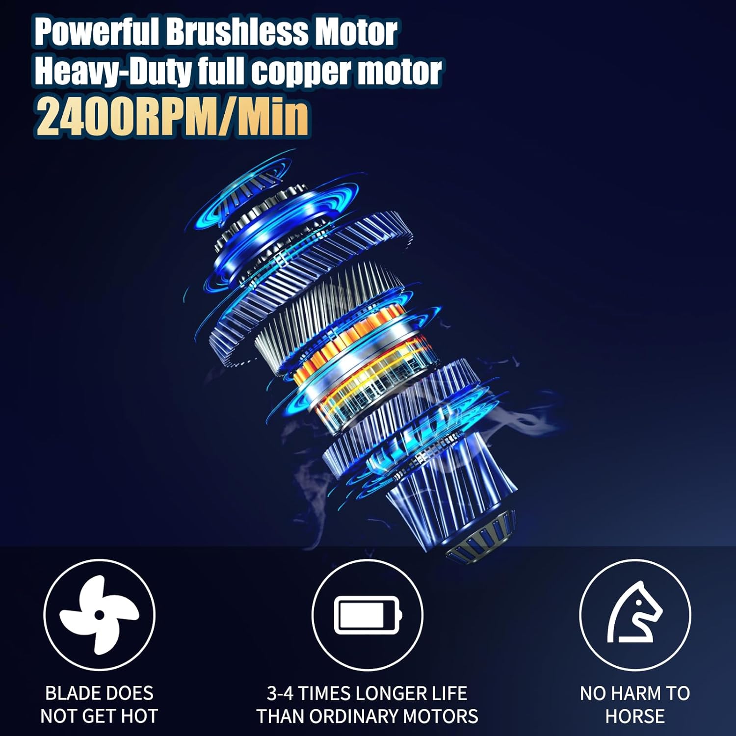 - 🐴【High-Strength Refined Carbon Steel Blades】This cordless electric horse shear is equipped with High Carbon blades. sharpness and durability, allowing for quickly, effectively, and smoothly cut horsehair.Additionally, the specially crafted head is fitted with ventilation holes to prevent clogging, cuts, and burns to the animal. Users can precisely adjust the tightness of the curling claws through the spiral, achieving smooth and smooth removal of animal hair.Removable blades for easy installation