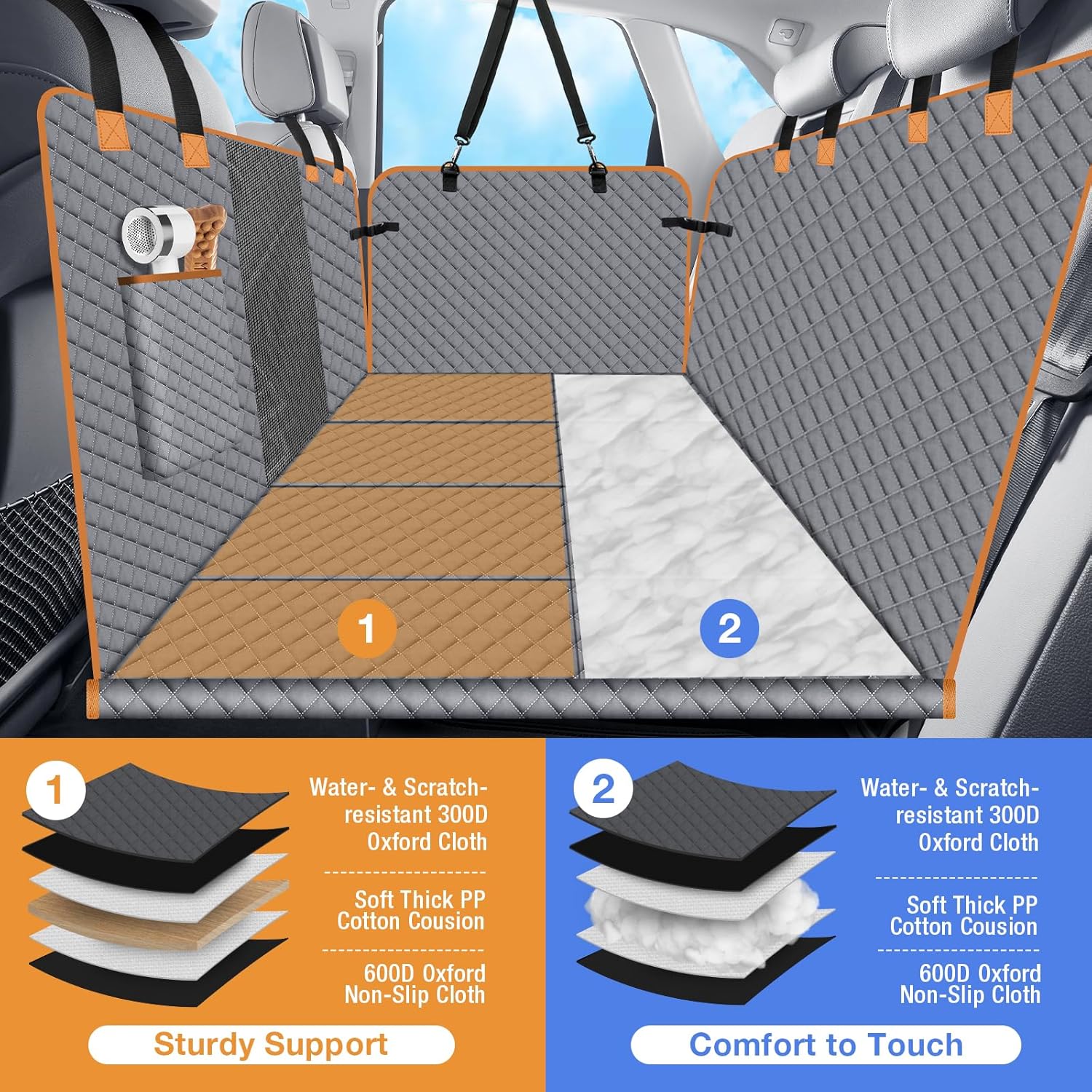 Dog Car Seat Cover for Back Seat, Dog Car Bed Cover with Strong Hard Bottom, Back Seat Extender Hammock for SUV Truck,4 Panels Gray Color