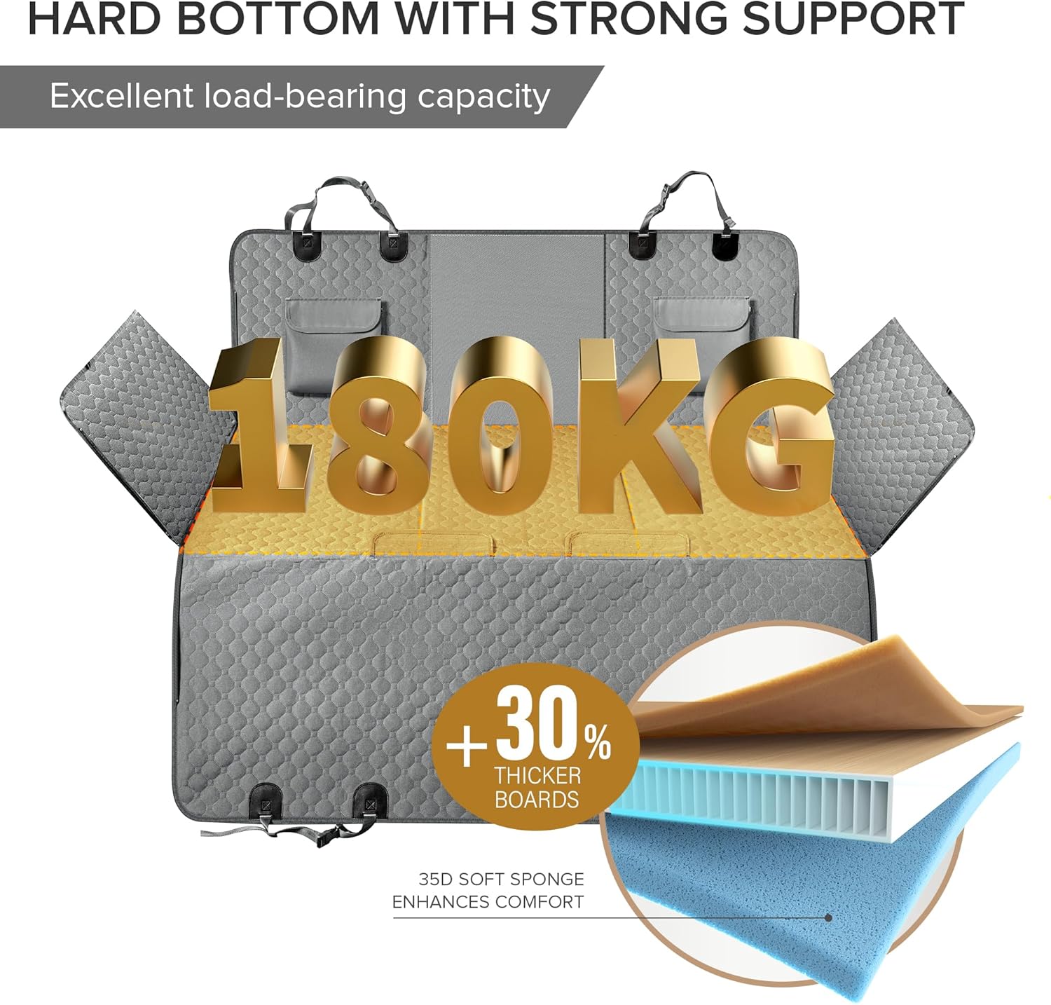 SHARLOVY XL Truck Back Seat Extender for Dogs, Large Hard Bottom Dog Car Seat Cover for Back Seat, Heavy Duty Dog Car Hammock, Waterproof Pet Seat Covers for Trucks, F150, Ram1500 and Large SUV