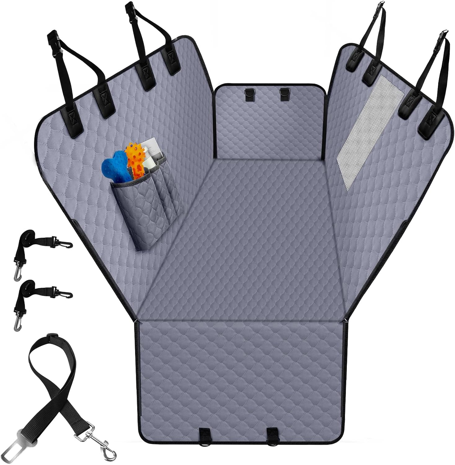 - Water-Resistant & Durable: Made with high-quality 600D polyester in the center and lightweight 420D polyester on the sides, this car dog cover provides a water-resistant layer, preventing stains, dirt, and moisture from damaging your carโs upholstery. It also works well as a protection layer for baby car seats.