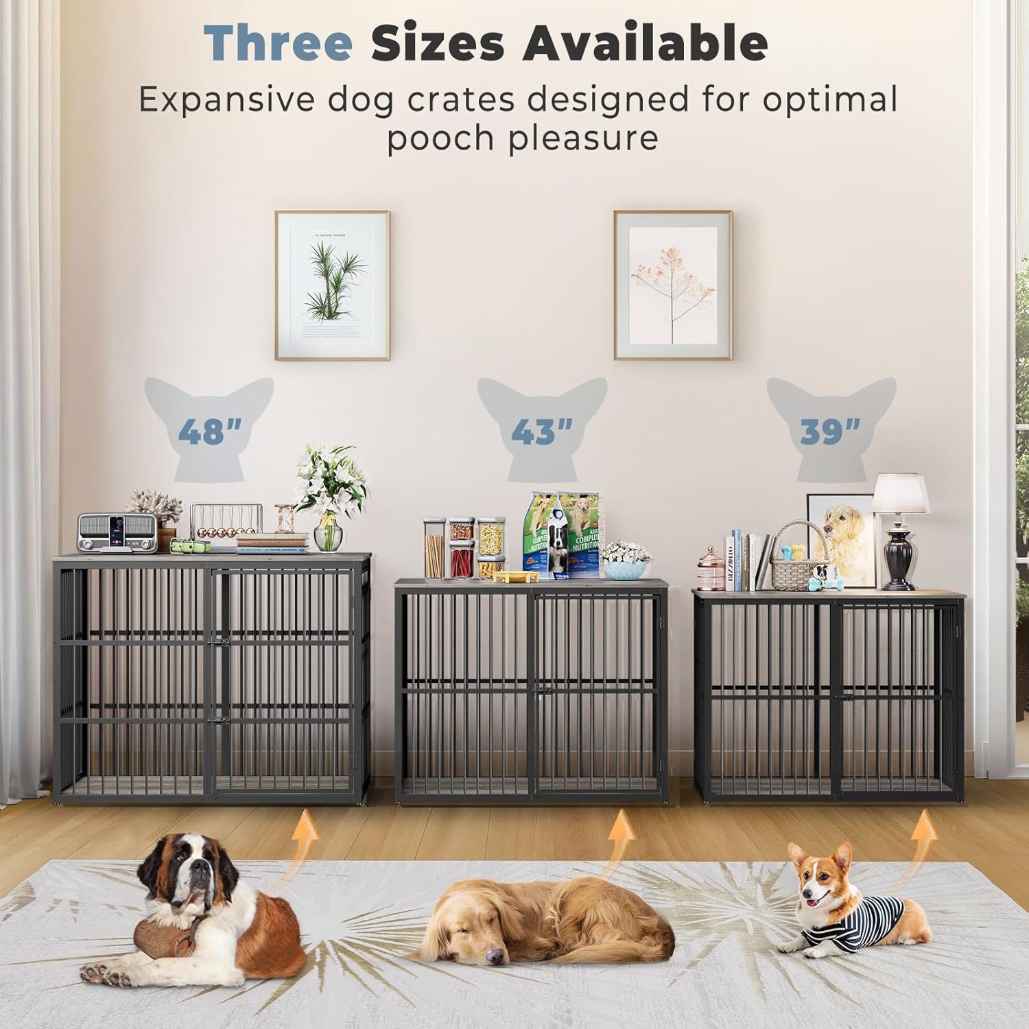 - 【Multifunctional Dog Crate】 This large dog kennel furniture can provide a comfortable haven for your dog, as a side table to save space; You can easily place decorations or items on the top