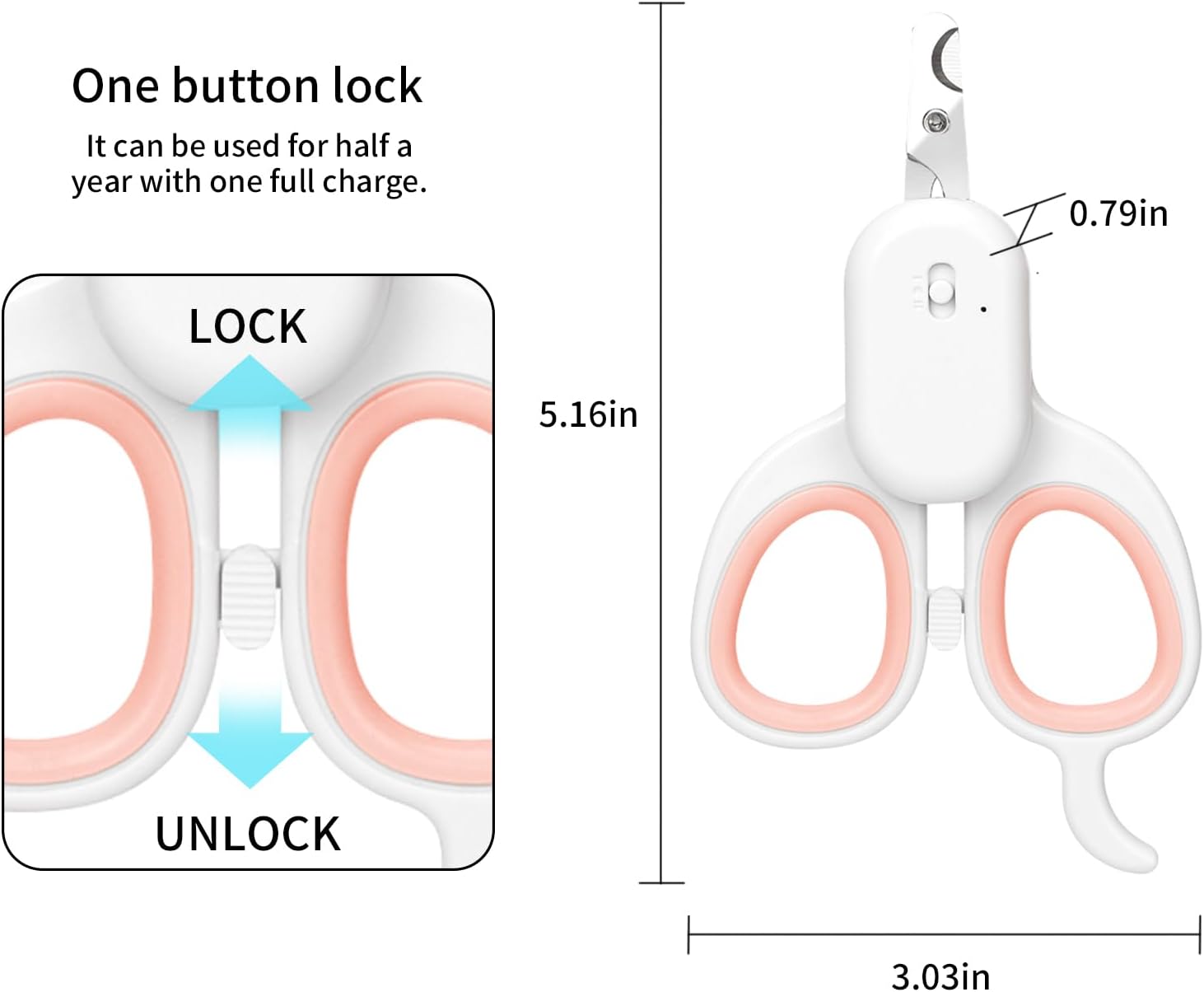 - Reassuring Safety Lock: We have designed safety snaps for pet nail clippers. The safety lock prevents your child from being scratched by the sharp cutting head, you can put it anywhere without worrying about safety