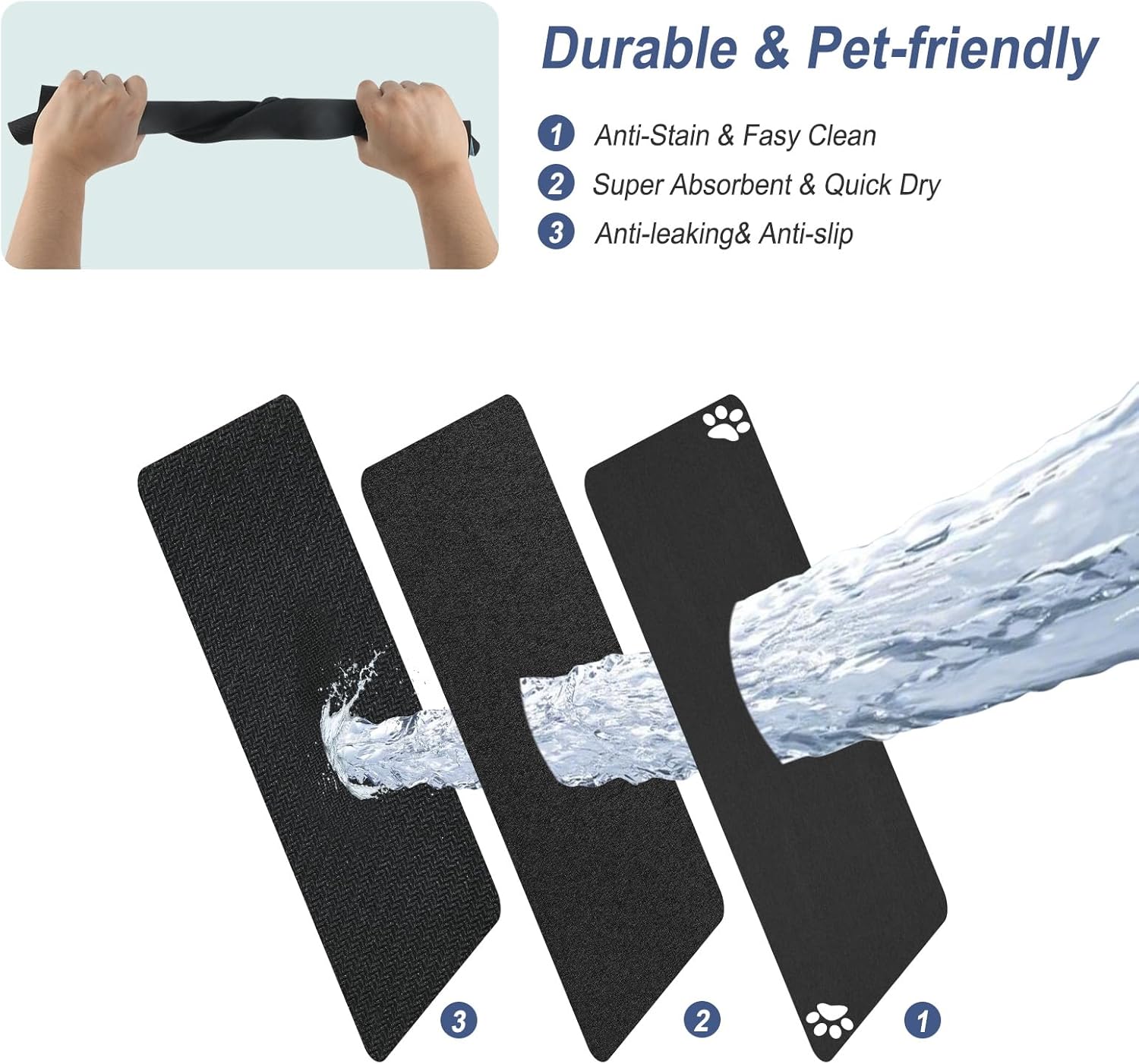- Pet Feeding Mat๏ผabsorbent dog mat for food and water bowl,no stains quick dry dog water dispenser mat,dog accessories pet supplies,dog water bowl for messy drinkers,this pet food mat can prevent liquid from overflowing. super absorbent and quick-drying ability to avoid wetting pet paws even for messy drinkers. sturdy dog & cat food bowl mat cannot be torn easily and avoid eating by mistake. keep the pet's eating environment tidy and clean.