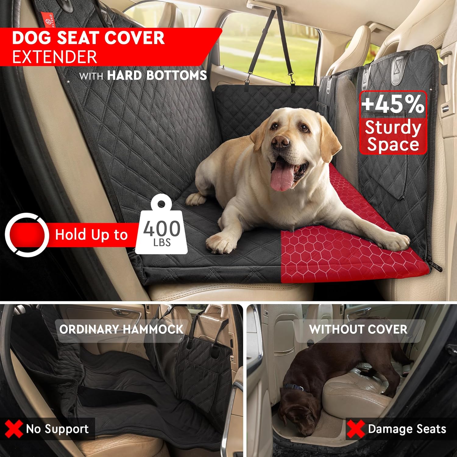 - Enhanced Dog Comfort - Give your pet the ultimate car travel with our back seat extender for dogs. Crafted with three extra sturdy boards inside, it expands your vehicle's backseat, offering ample space for your pet, and preventing them from falling. No more worries about your pet slipping or falling during the ride, plus extra protection of your seats from scratches, mud, and others.