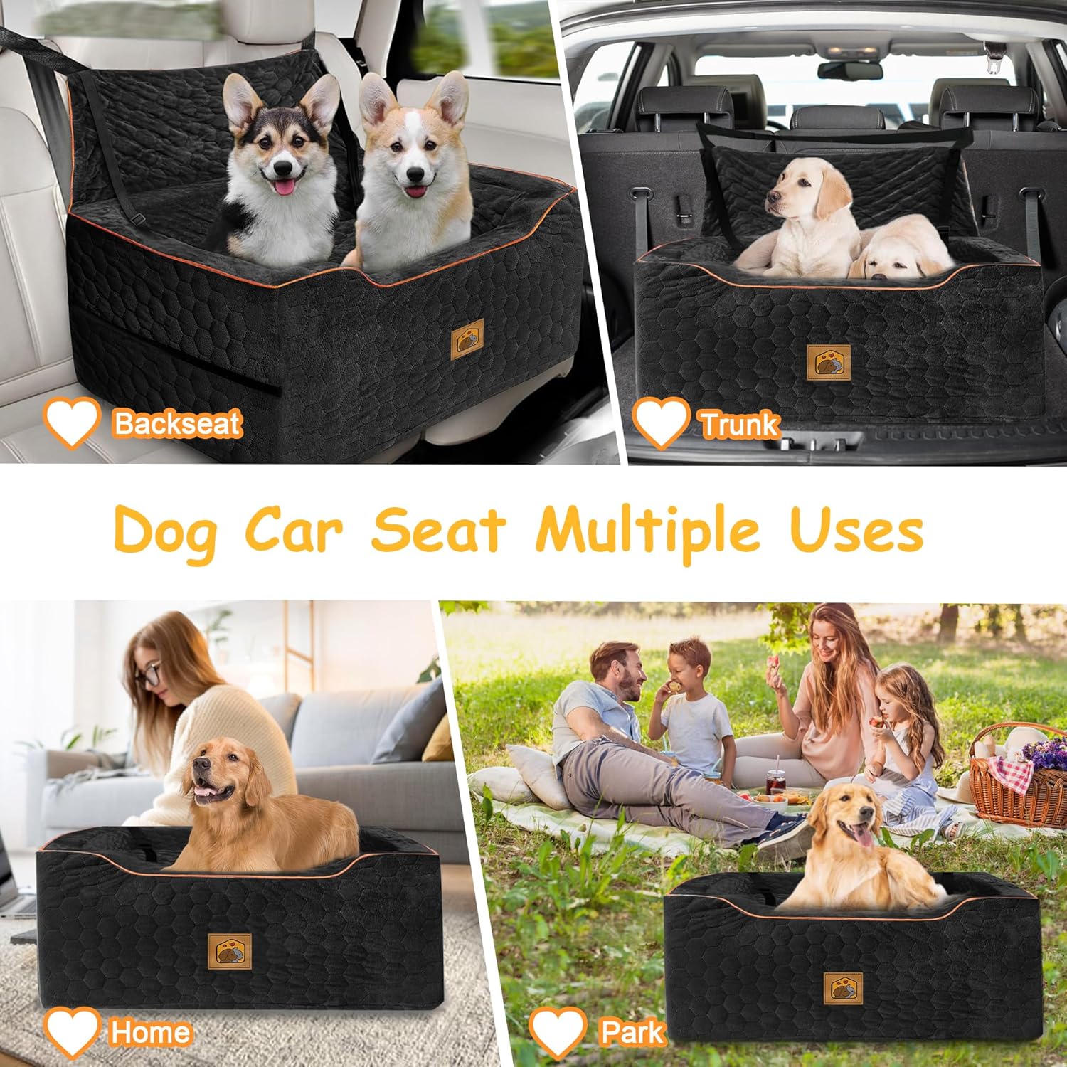 Dog Car Seat for Medium/Large Dogs, Washable Dog Booster Seat Under 60 lbs or 2 Small Dogs, Multi-Functional Pet Car Seat with Thick Cushion, 2 Safety Leashes (Black)