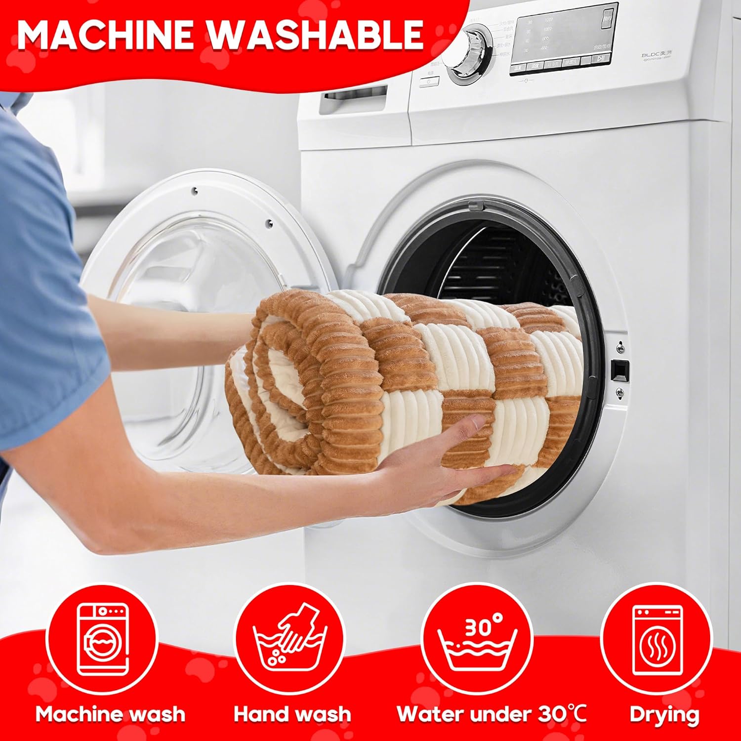 - 🧼【Durable and Easy to Clean】We understand that pet products need to withstand daily wear and tear. That's why this fuzzy dog bed is made of durable materials that can endure your pet's scratching, chewing, and all kinds of daily abrasion. Moreover, it's extremely easy to clean: just toss it in the washing machine with cold water (about 30°C) and gentle detergent, no bleach needed! For drying, keep the temp below 40°C—no ironing required. When the mat gets dirty, this hassle-free care routine lets it quickly return to a clean, tidy state, saving you time and effort.