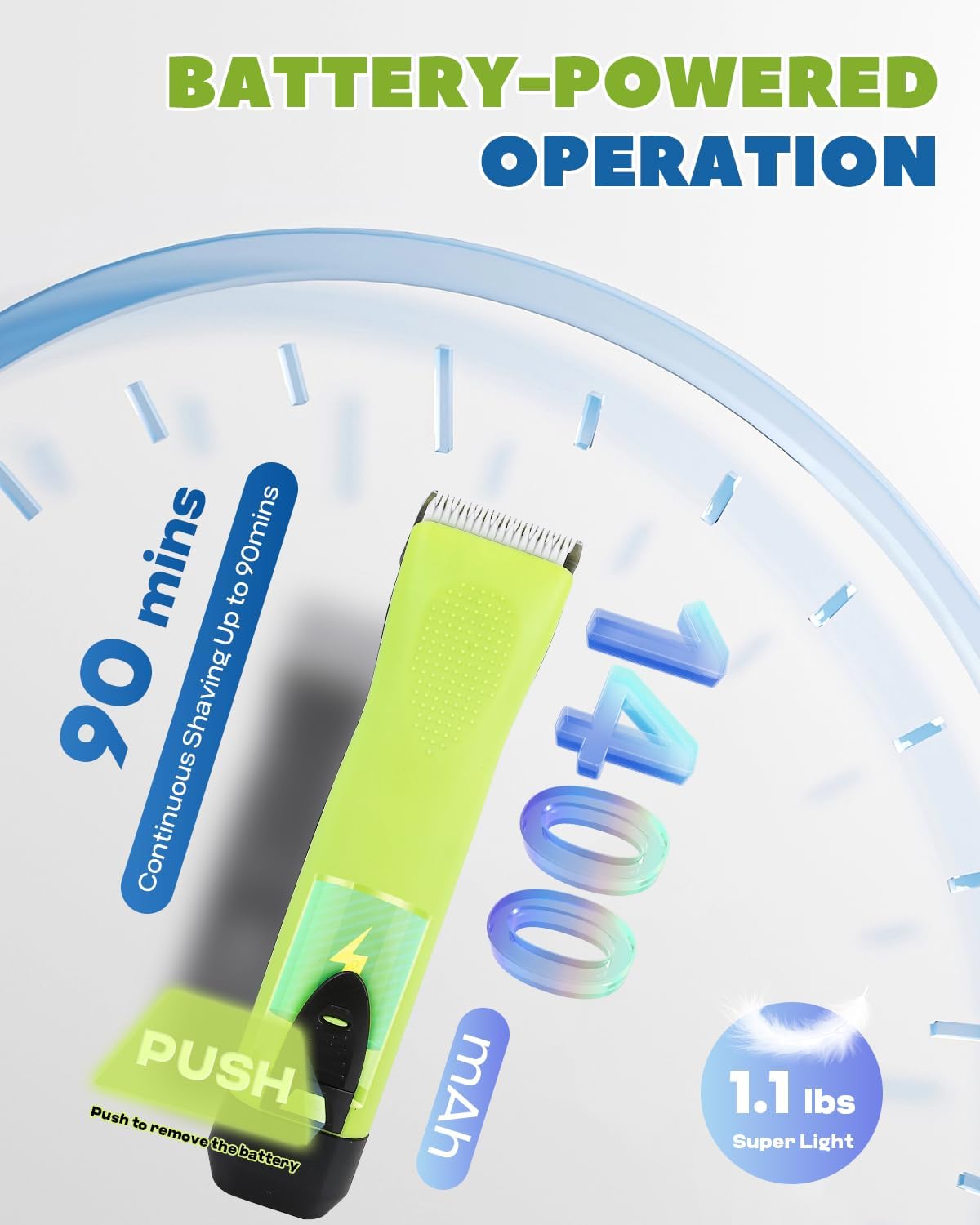 - [Dual Power Options Convenience]: Power Whenever, Wherever! This professional horse shear packs a punch with its 7.4V, 1400mAh lithium battery, delivering up to 90 minutes of uninterrupted grooming in a quick 2-hour charge. And hereโs the kickerโthis pet clipper hooks up to a 3.5-meter-long charging cable, so you can groom on the go without ever pausing to recharge. No more cord-induced shackles, just pure, uninterrupted grooming freedom.