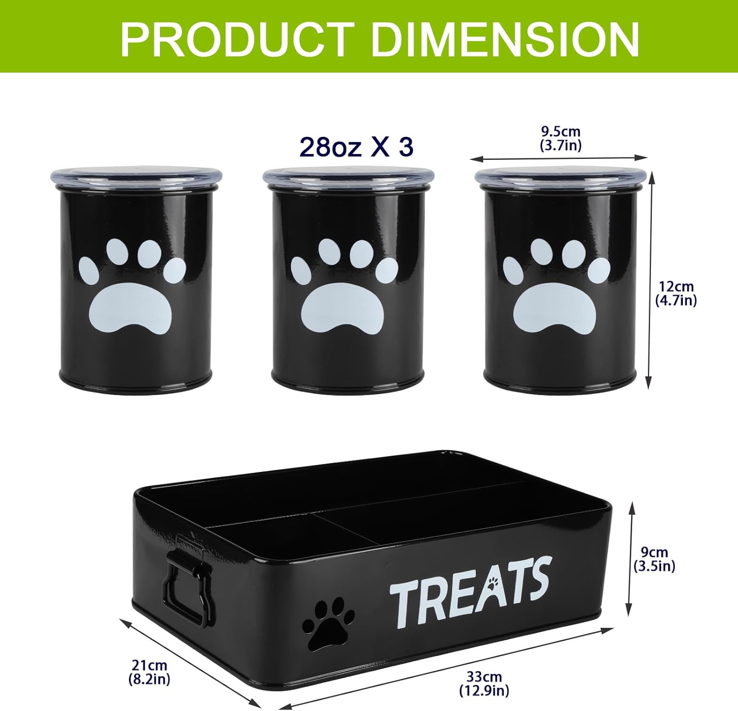 28oz Metal Dog Treat Container Set of 3,Dog Treat Jars with Airtight Lids,Cat Treat Jar,Dog Treat Canister for Countertop,Coated Galvanized Steel Dog Treats Station-Black