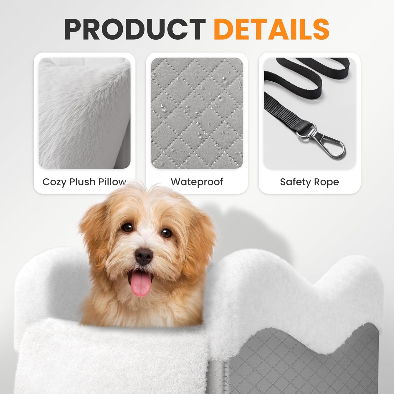 Portable Small Dog Seat for Car,Luxury Center Console Dog Car Seat Booster with Safety Tethers,Auti-Collapse Pet Travel Carrier for SUV,Truck.(Light Grey/White)