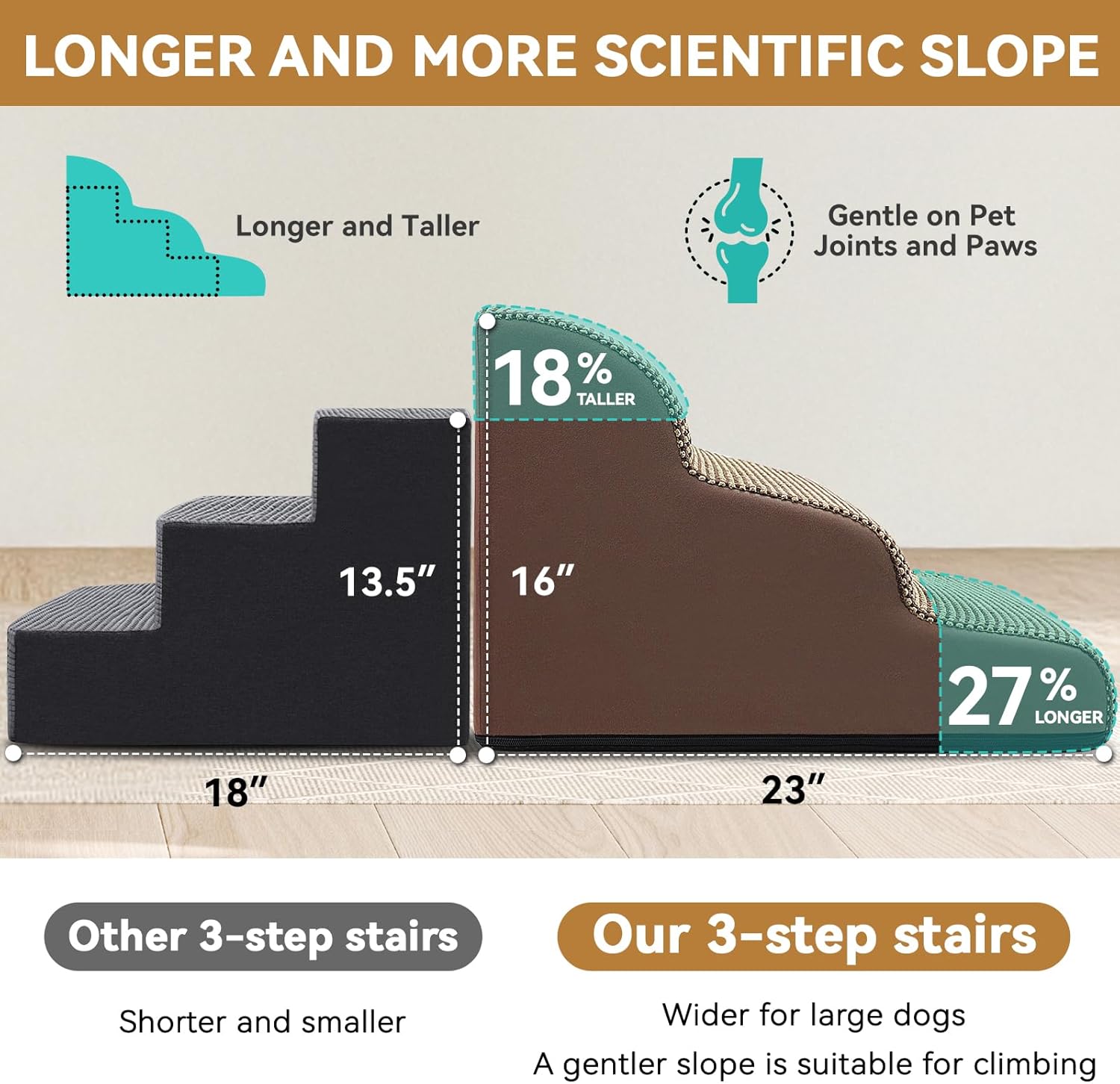 Dog Ramp and Stair for Bed 16" H-20 H,3-Step Cat Stair for Sofa and Chair,4-Step Dog Ramp for High Bed and Window,Durable Nonslip Fabric Cover for Indoor (Coffee-16 H, Pet Friendly, 3)