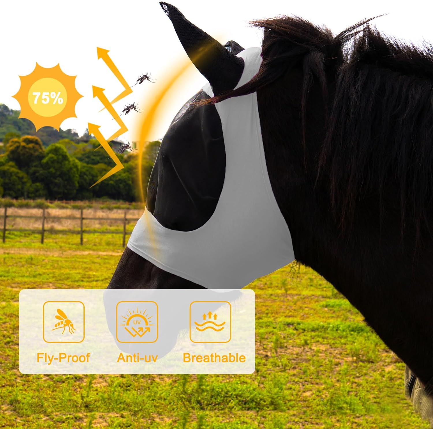 - PROTECTION: Full-coverage mesh horse fly mask shields your horse's face, eyes, and ears from harmful UV rays, dust, and pesky insects