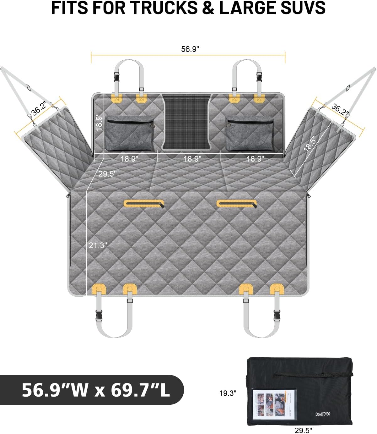 Back Seat Extender for Dog, Waterproof Dog Car Seat Cover for Back Seat, Hard Bottom Car Seat Cover, Large Space Hammock for Full-Size Crewcab Trucks, Pet Seat Cover Holds 450lbs(Grey)