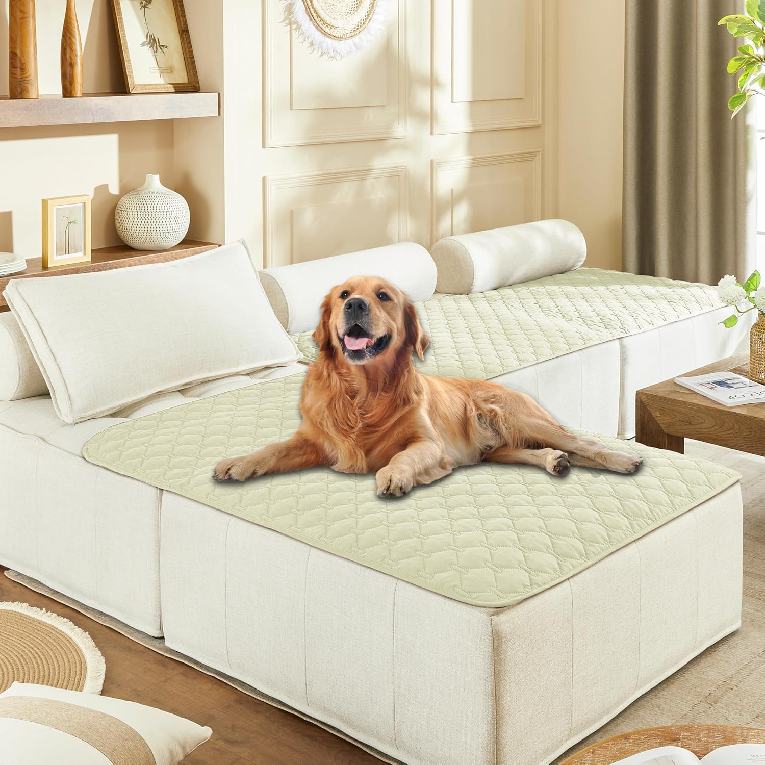 gogobunny 100% Double-Sided Waterproof Dog Bed Cover Pet Blanket Sofa Couch Furniture Protector for Puppy Large Dog Cat, Reversible (40x50 Inch (Pack of 1), Dark Cream/Light Cream)