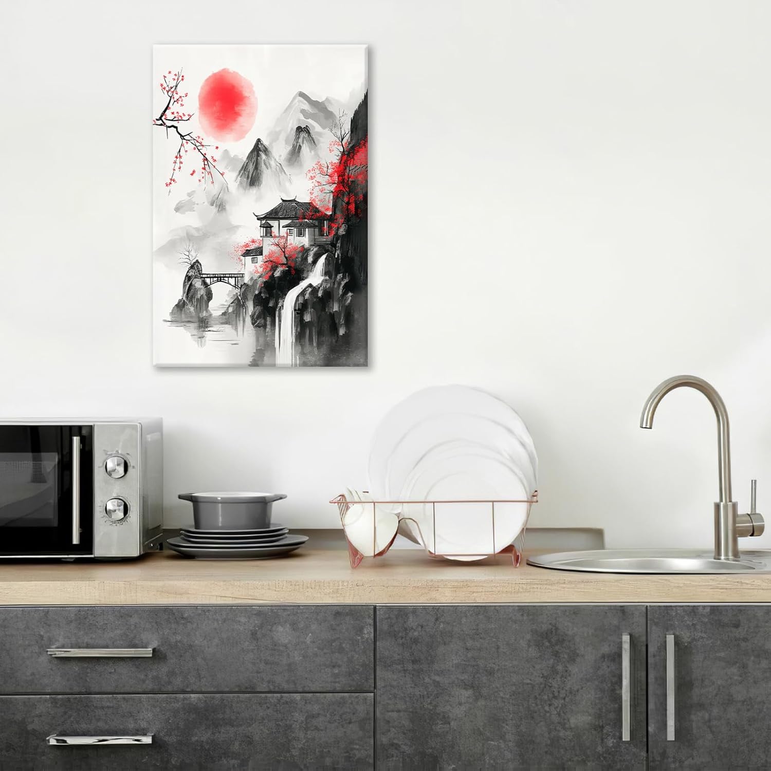 Japanese Wall Art Canvas Asian Nature Wall Decor Prints Framed Painting Mountain Landscape Pictures Gifts Artwork for Bathroom 16"x24"