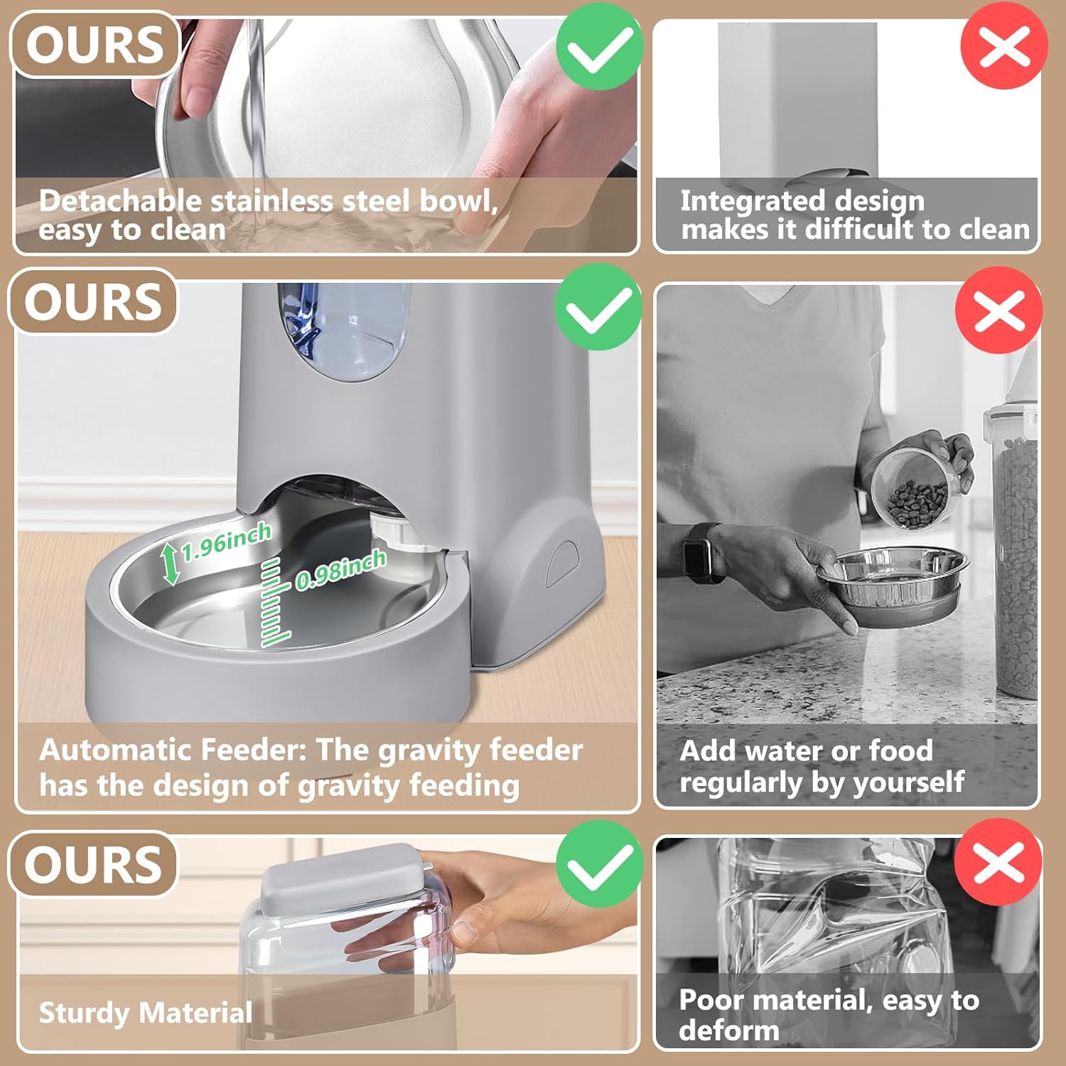 - Cat Dog Automatic Feeder and Water Dispenser: automatic food feeder*1, pet water dispenser* 1. pet food feeder and waterer set suitable for small and medium dogs or cats