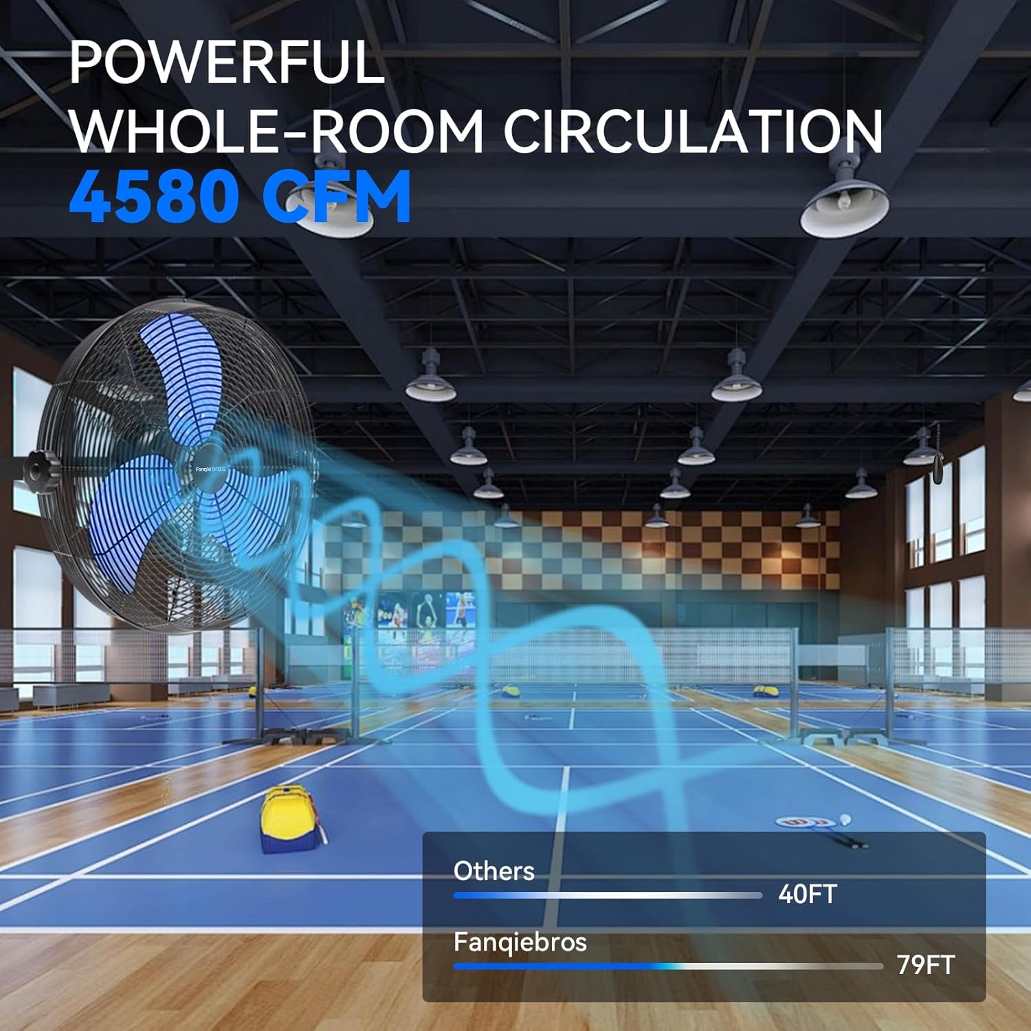 - ๐๐จ๐ฐ-๐๐จ๐ข๐ฌ๐ ๐๐๐ฌ๐ข๐ ๐ง - The heavy-duty wall fan operates at a high speed of 4580 CFM with a noise level of only 60dB, which is lower than the industry standard, creating a quieter gathering or working environment