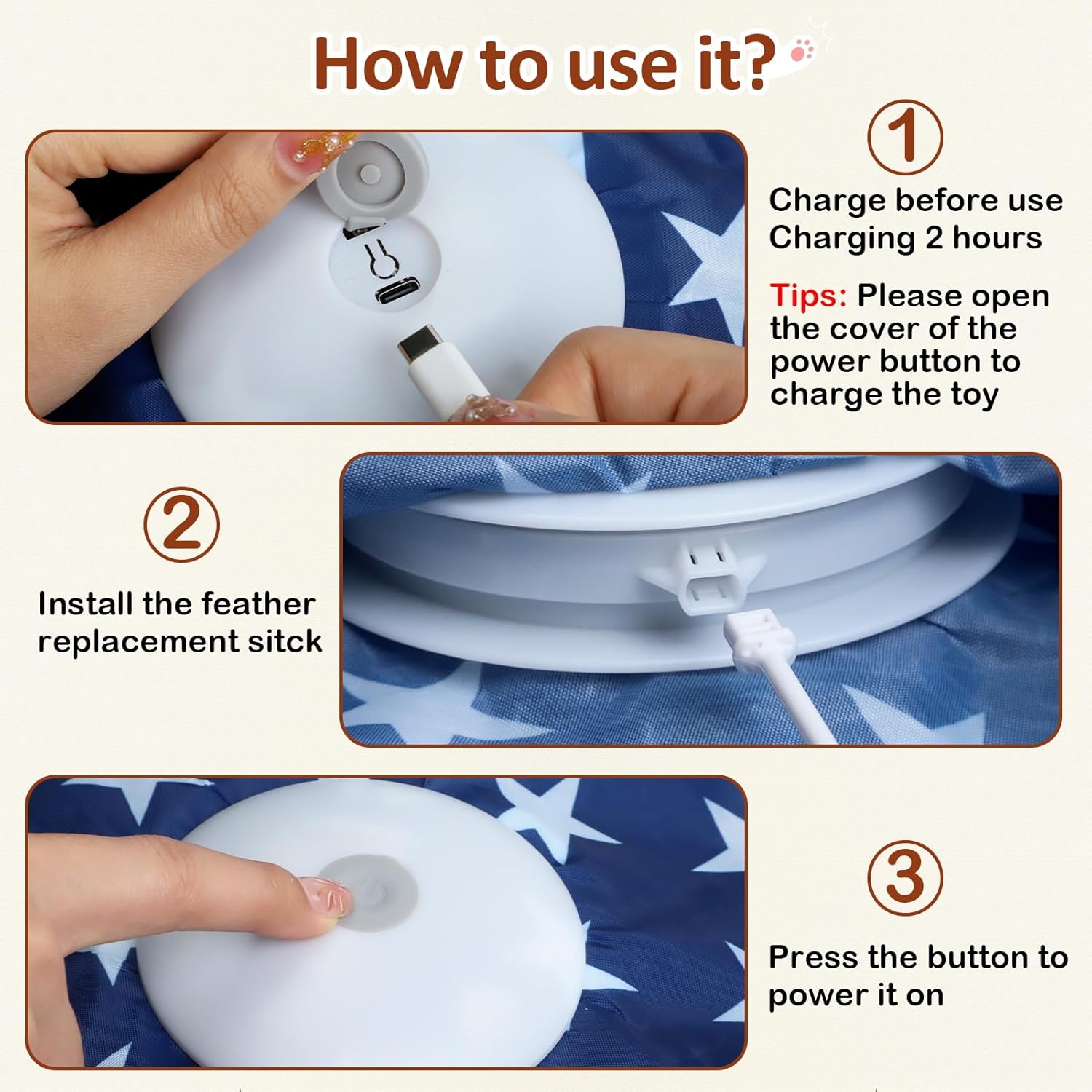 - Three speed modes - slow, fast, and interactiveโthis feather cat toy adapts to a variety of cat play style and suitable for both solo and group play. Hight support this cat toys for bored indoor adult cats