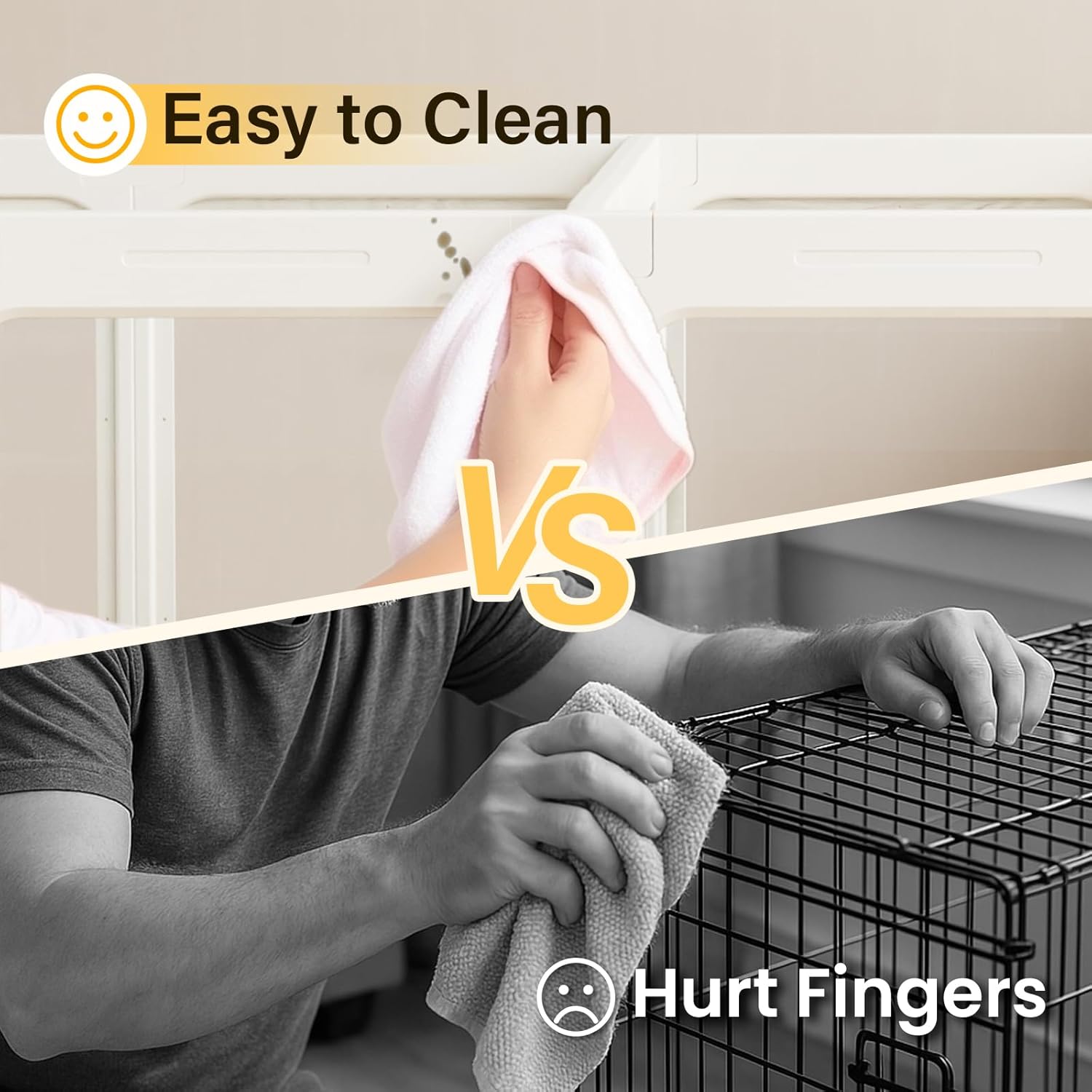 - Modern & Transparent Design: Crafted with acrylic dog playpen panels and reinforced plastic frames, this clear dog play pen offers unmatched transparency to monitor pets while ensuring long-lasting durability. The scratch-resistant surface withstands claws and daily wear, perfect for energetic puppies or curious cats.