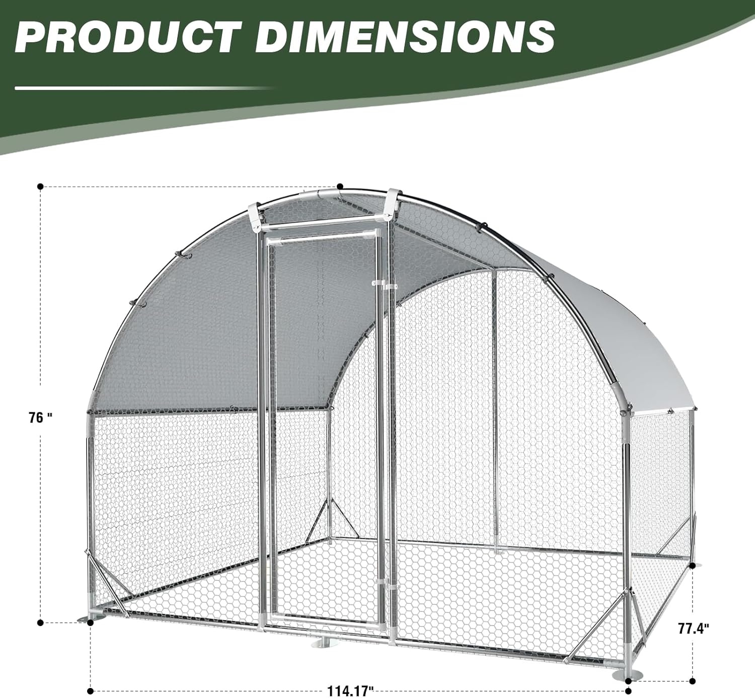 4ever2buy Large Metal Chicken Coop with Run Walk-in Poultry Cage Chicken Runs House Pen Cage Dome Roofed Chicken Coops with Anti-Ultraviolet Cover for Outdoor Yard Farm Use 9.5'W x 6.45'L x 6.3'H