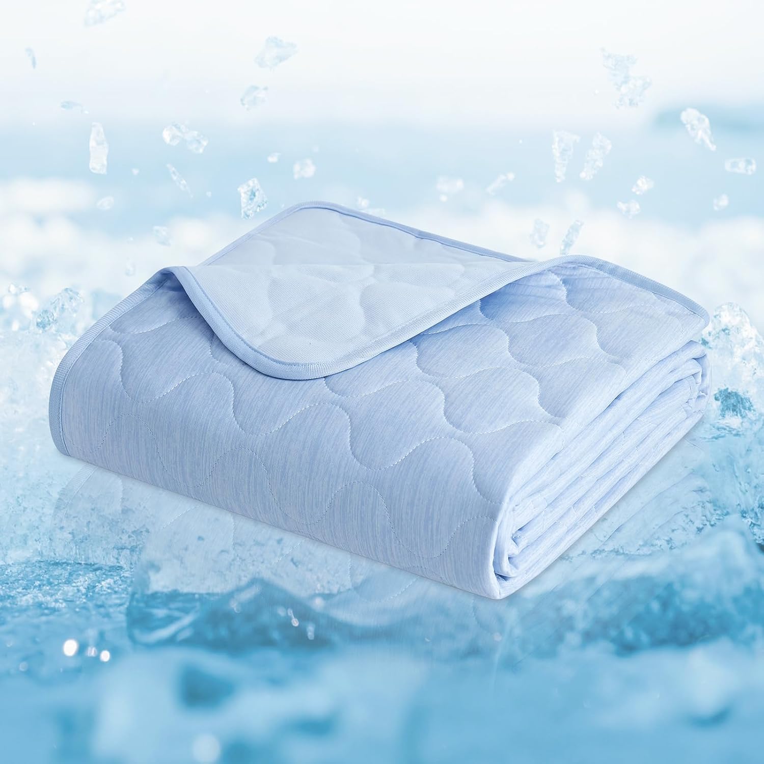 Cozy Bliss Leakproof Cooling Blanket for Large Dogs – Q-Max>0.4, Durable & Washable Dog Cooling Mat for Hot Weather, Soft Pet Throw & Couch Protector for Multiple Pets 60x80 Inch, Heather Cool Blue