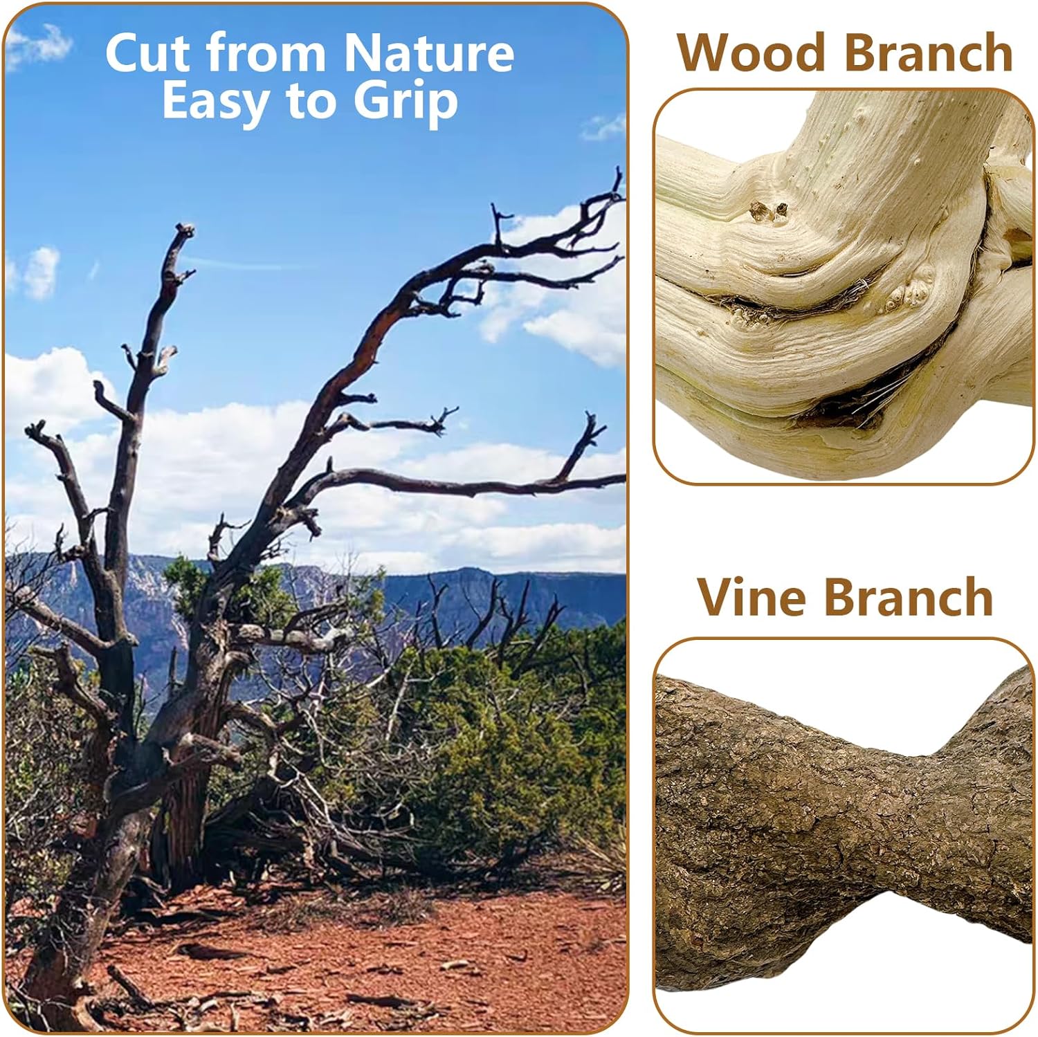 - 【Natural Wood】The 2 reptile climbing branches are cut from naturally growing wood branches and vine branches, carefully selected to the appropriate thickness and length for your reptile.
