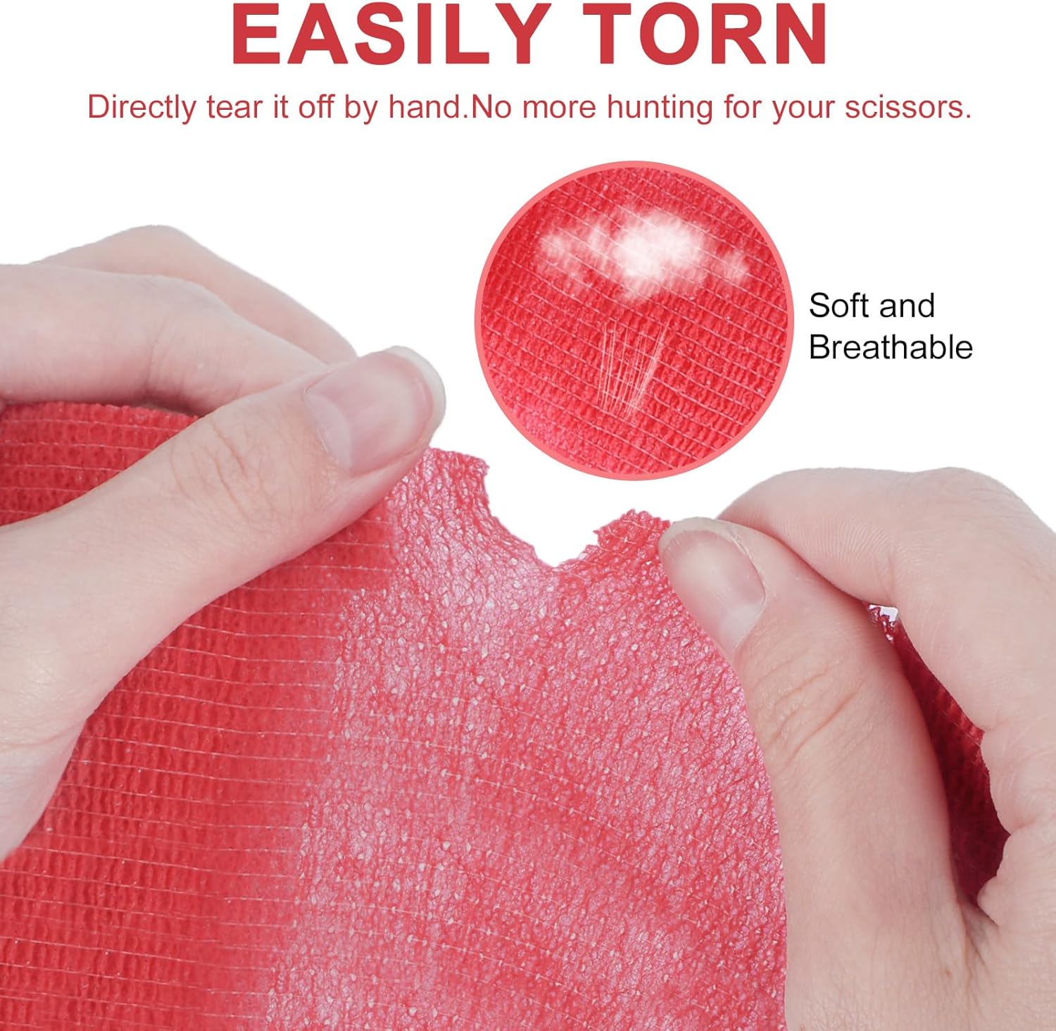 - 【No Residue & Effortless Application】Unlike ordinary tapes, this self-adhesive bandage sticks only to itself, not skin or hair. Easily tear by hand without scissors—perfect for quick fixes during sports, workouts, or pet emergencies. No pins or clips needed!