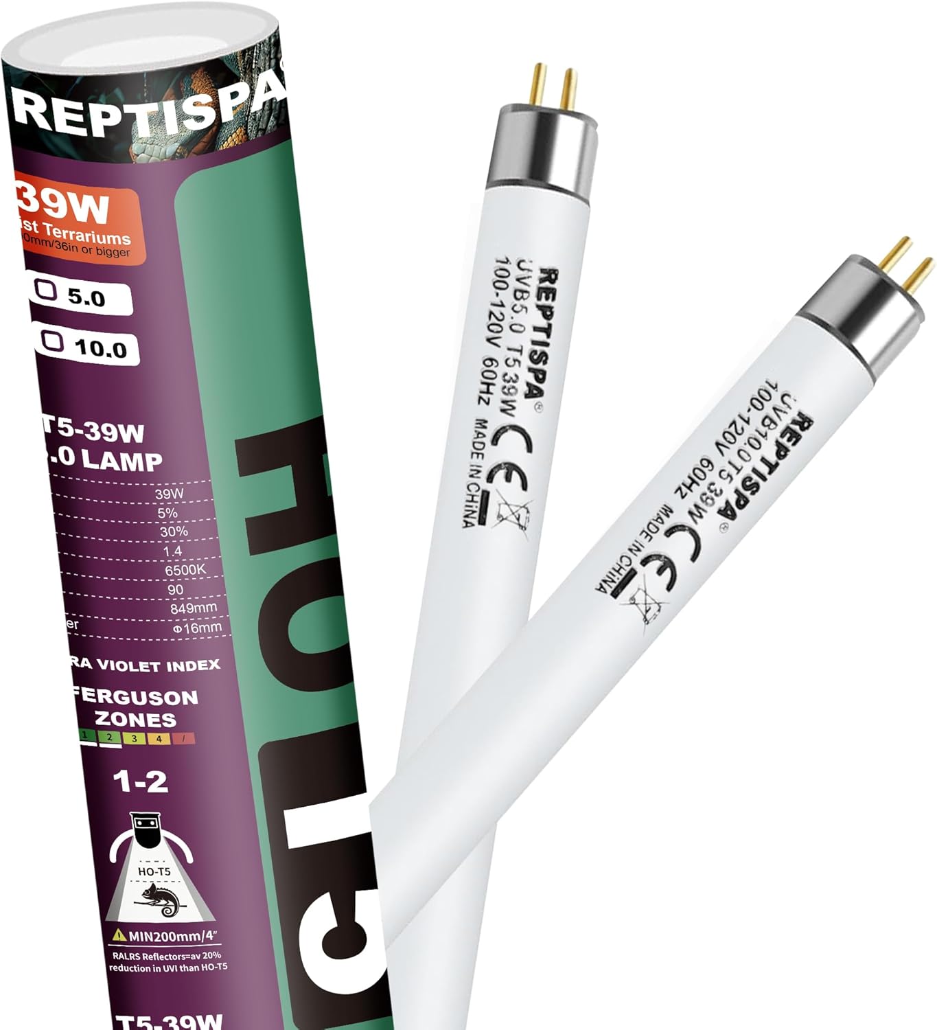 - VERSATILE APPLICATIONS: REPTISPA T5 UVB reptile light is ideal for various reptiles and amphibians, no matter they originate from rainforest or desert. 5.0 UVB bulb is suitable for tropical rainforest species, such as chameleons, snakes, aquatic turtles and frogs. 10.0 UVB bulb is perfect for desert dwelling reptiles, such as bearded dragons, tortoises, uromastyx, and collard lizards.