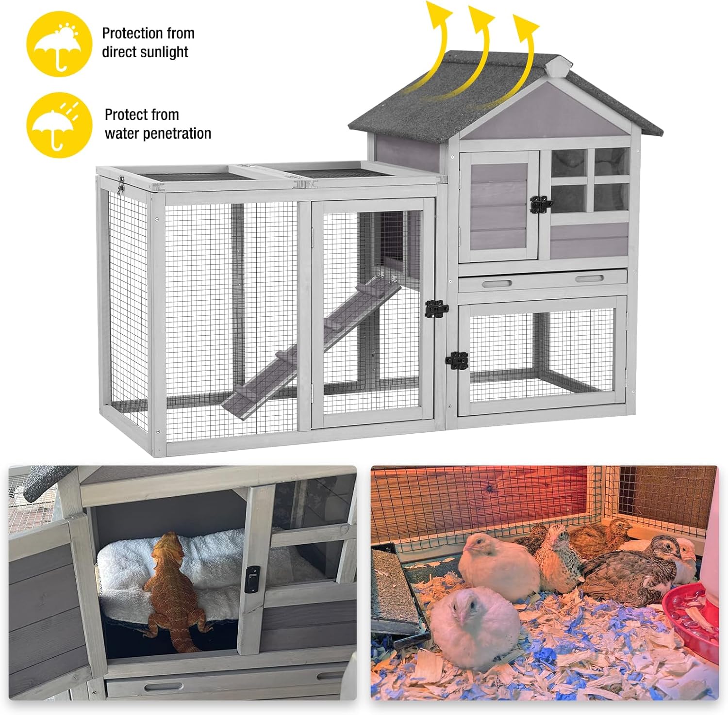 • 【Overall Dimension】Overall size:51.6"L x 25.2"W x 36.2"H,perfect shelter for rabbits,guinea pigs,chickens,ducks and other small animals!