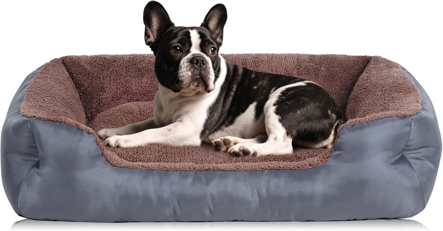 - COMFORT AS PRIORITY: This rectangular dog bed adopts four-sided bolsters wrapping design that provides your pet enough security, help pets fall sleep quickly and deeply. Raised rim provides comfortable support for your petβs neck and head. The low front edge is easy access for your pet, protects your pet's knees and promotes accessibility for pets of all ages