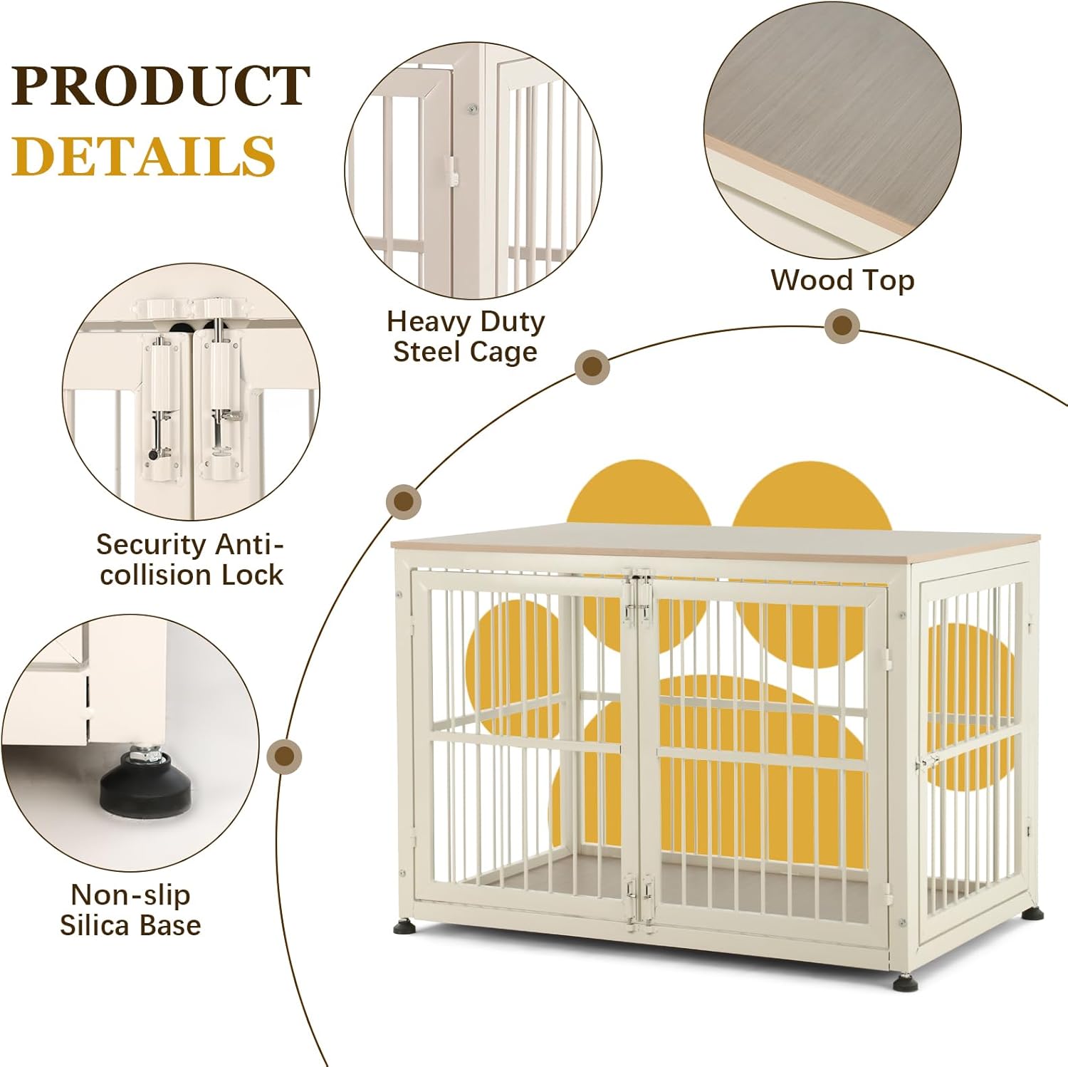 - Multi-Lock Guarantee: The dog crate has 4 sliding locks on the front door and 2 sliding locks on the side door. The design of multiple locks can effectively prevent dogs from opening the crate by themselves. Meanwhile, the sliding locks are easy and smooth to operate and convenient to open and close the door, which balances safety and convenience of use