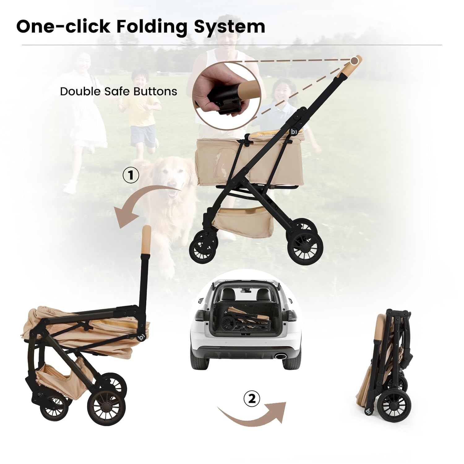 - Safe to Stroll: Khaki small pet stroller equipped with premium shock absorption and durable EVA wheels, 360ยฐ swivel front wheel with 5.5"/ 7" wheel design minimizes discomfort on uneven terrain and enhances comfort for your pet. 180ยฐ Convertible Canopy allows you to interact with your pet at any time and see what's going on with your pet.