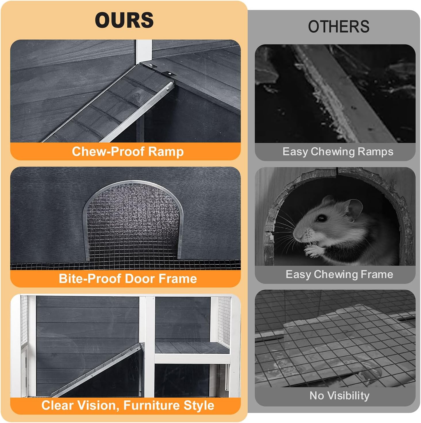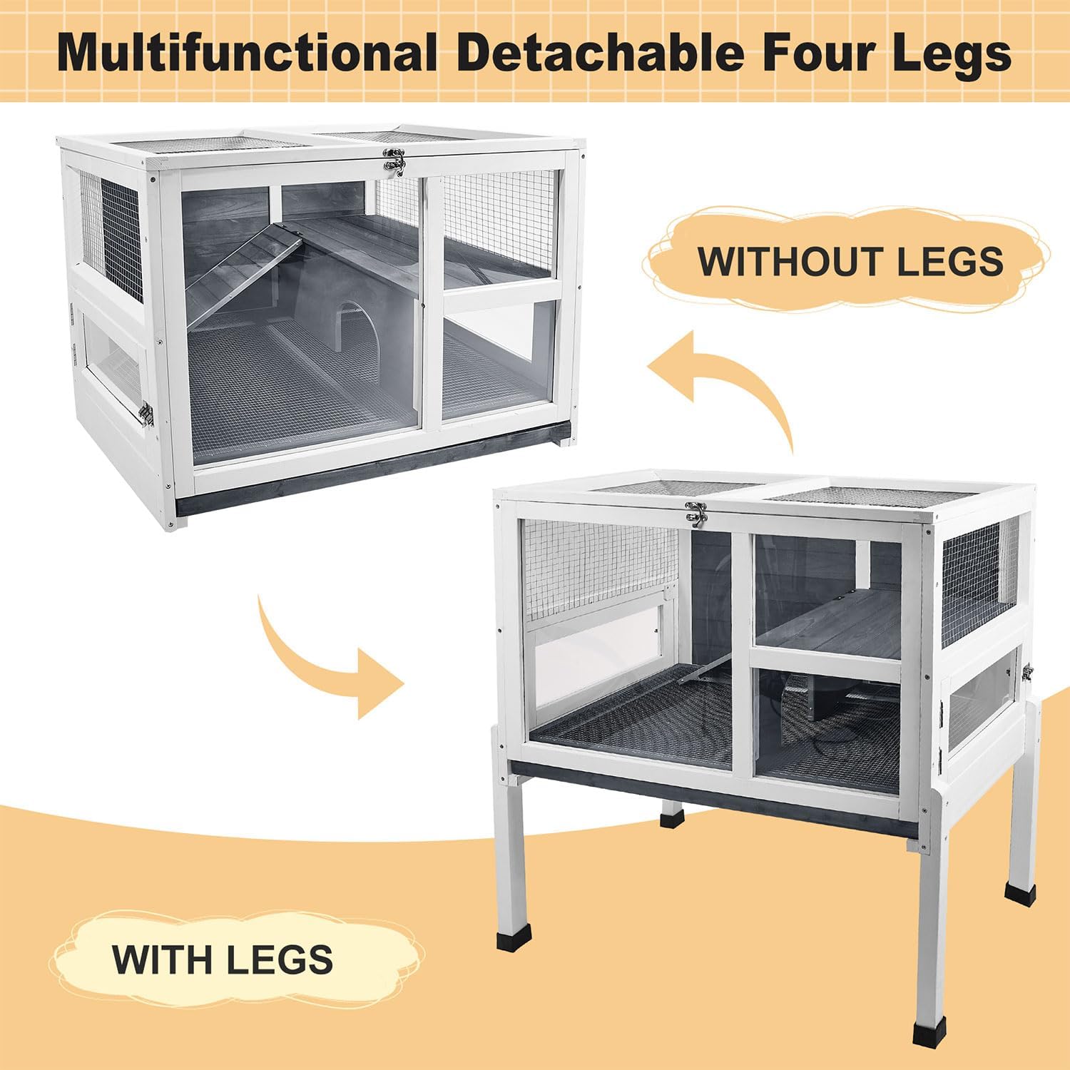 - Smart Ventilation & Easy Access: Metal mesh ensures excellent airflow while locking side doors on both ends make cleaning and feeding simple. A deep pull-out tray collects waste, reducing odor and cleanup time.