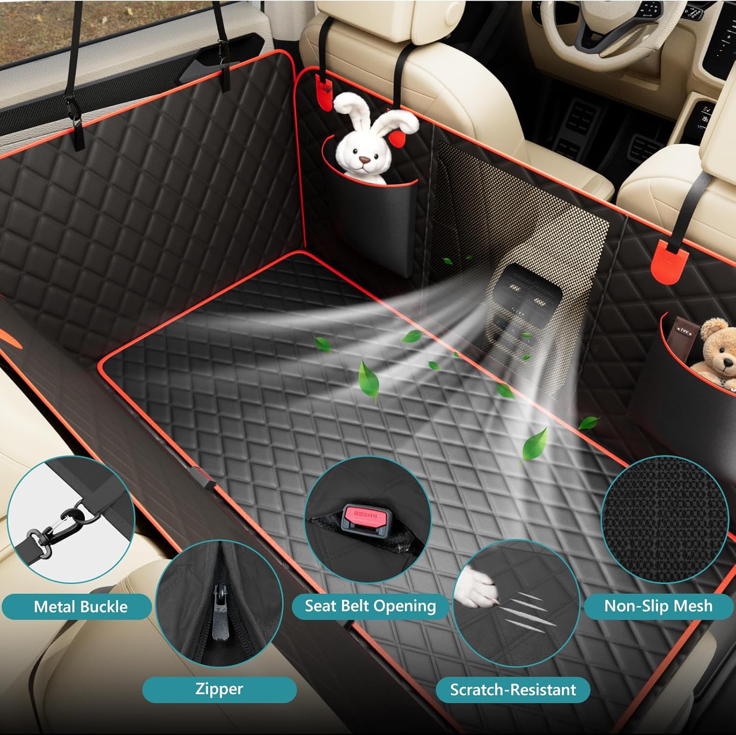 - Removable design for easy cleaning – Featuring 7 layers of padded support, a hard-bottom structure, and breathable fabric, this backseat cover for dogs in car ensures ultimate comfort for your pet. The detachable protective cover allows for quick and efficient cleaning, saving you time and effort with easy maintenance.