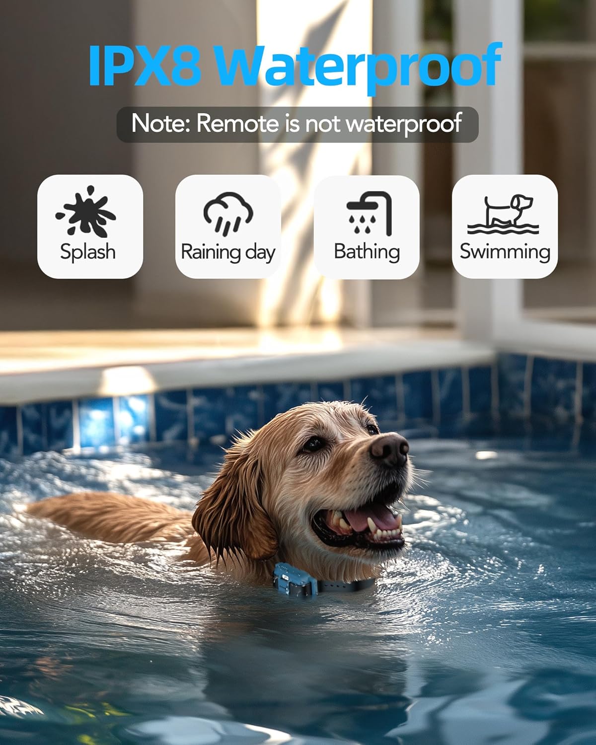 - 【Reliable and IPX8 Waterproof】The electric dog collar can be used in any weather and any condition thanks to the IPX8 waterproof design of the receiver. Includes a built-in LED collar light for the e-collar that helps locate your dog during night walks. Featuring a safety lock and switch button, it ensures quick response, preventing accidental activation and ensuring consistent training.