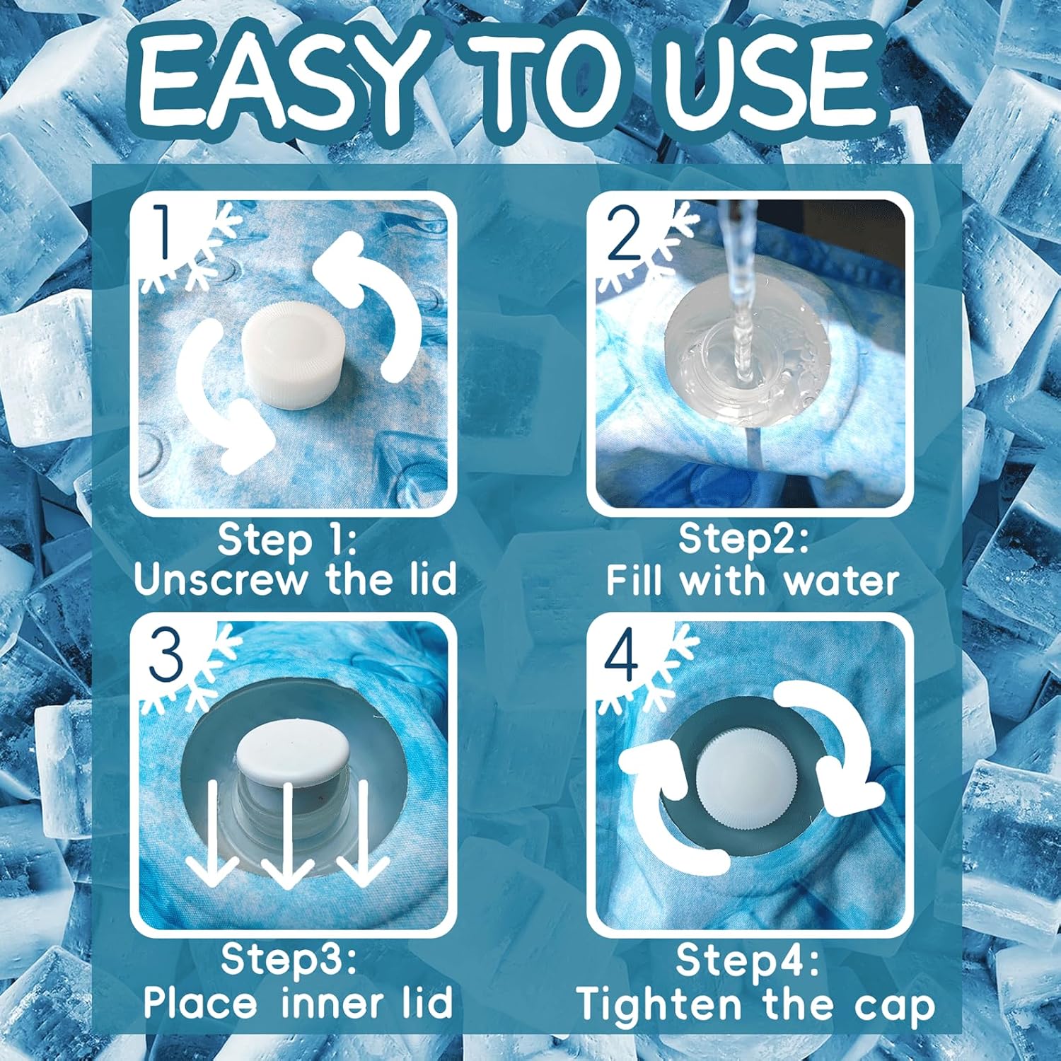 - Portable & Hassle-Free:Folds into a compact 1.2in thick booklet for easy storage and travel-ideal for camping or picnics! To use, simply lay it flat, fill via the elevated inlet, and seal the cap. To empty, tip the inlet downward for instant drainage.