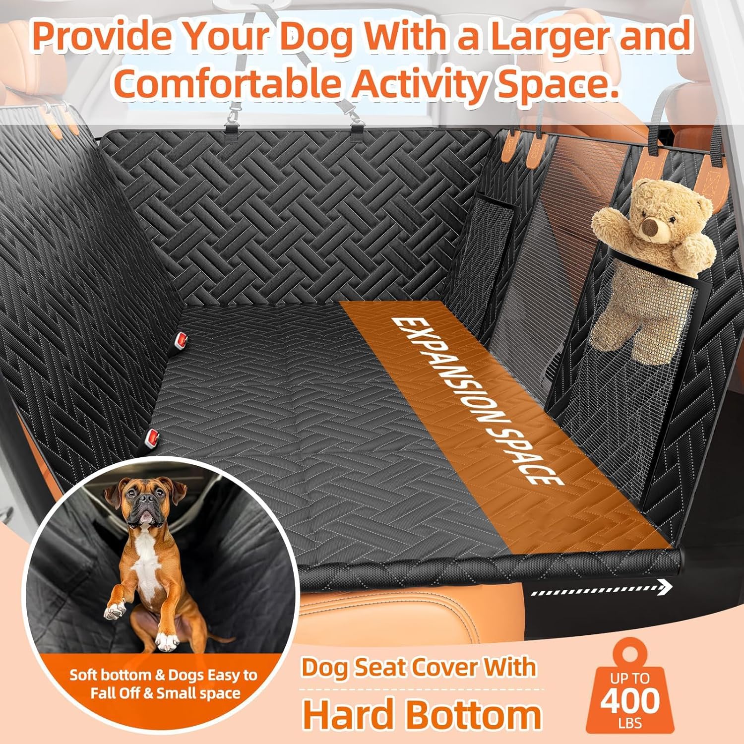 - [High quality materials]: The car dog hammock is made of durable Oxford fabric and designed to be 100% waterproof and scratch resistant,helping to protect the car seat from pet damage.High quality hard and thick bottom can provide 400 pound support