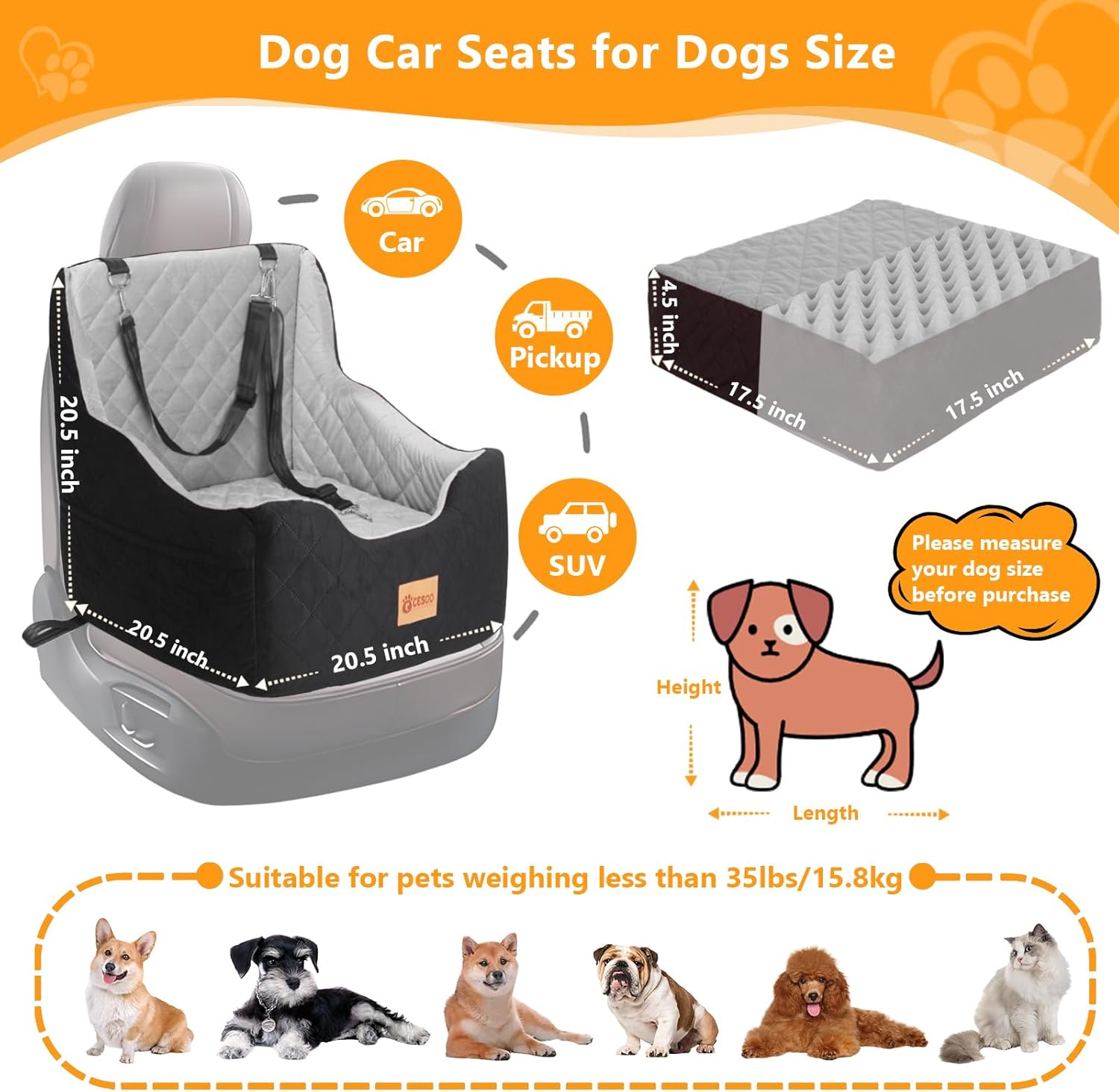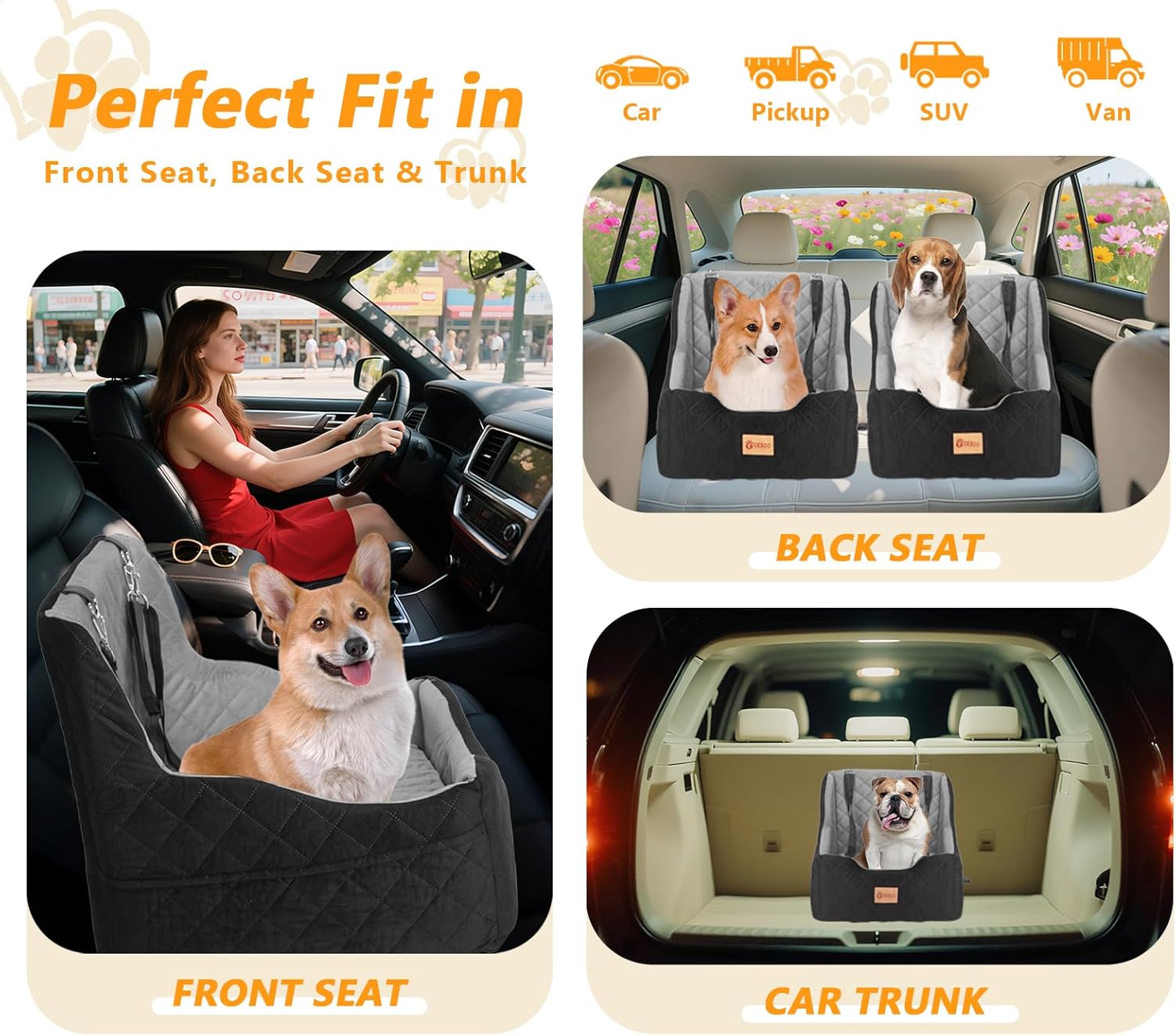 - Comfort and Multifunctional - Car seats for dogs adopt a brand new exterior design and high-quality materials, ensuring the safety of dog without lacking comfort.The elevated dog car seat has a thick cushion inside, effectively reducing the bumpy feeling of pet travel and improving the pet's view. It provide pets with comfortable rest, whether as dog bed at home, outdoors, or while traveling.