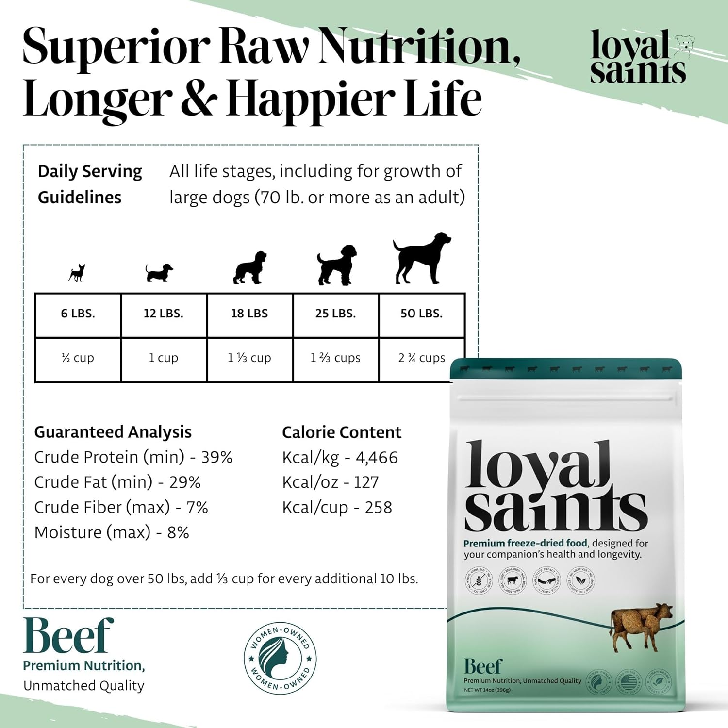Freeze Dried Raw Dog Food - Premium Beef Flavor with High Protein and Grain Free Dog Food for Small or Large Breeds and Picky Eaters - Versatile as Meal Topper, Snack, and Treats, 14 Oz
