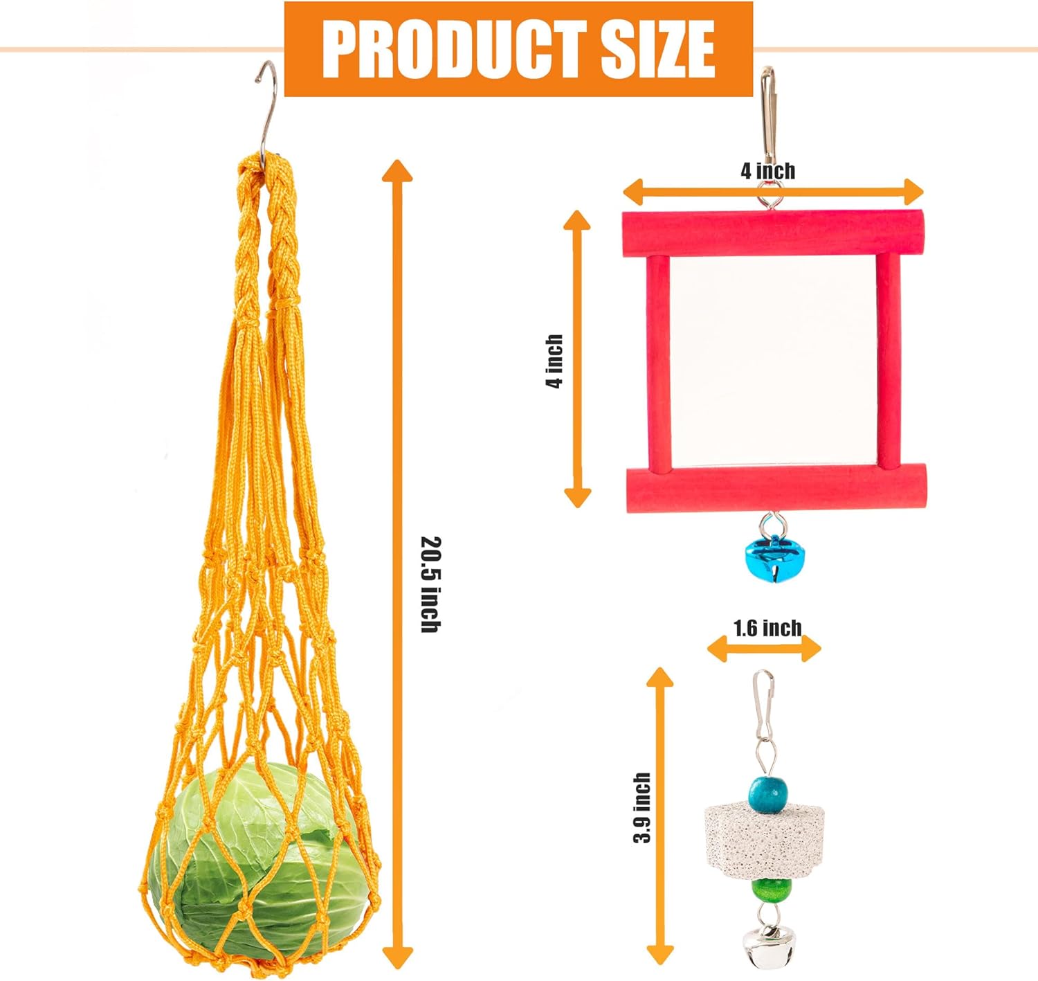 - 6 PCS Chicken Toys: This 6 pack chicken toys for coop include: 2 Chicken Mirror Toys, 2 hanging vegetable fruits nylon feeders and 2 beak grinding molar stones with jingle bell. Keep your chickens entertained with this variety pack designed for their natural behaviors.